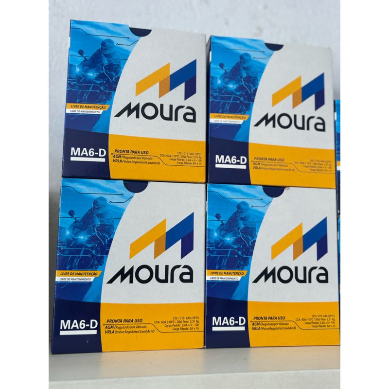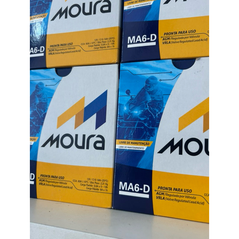 Moura Moto MA6-D 12V 6AH - Para Motos de 7 Amperes - 6 Meses de Garantia
