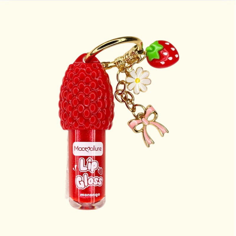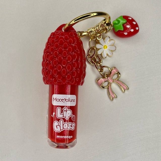 Lip Gloss Morango Hidratante Labial Com chaveiro pingente de morango 🍓 aroma suave da fruta - Kit Dois Gloss ou Unidade