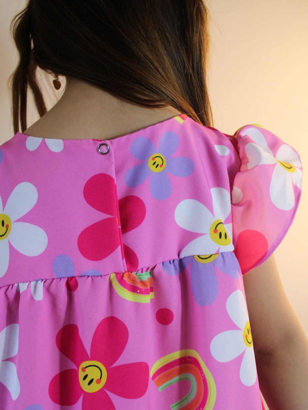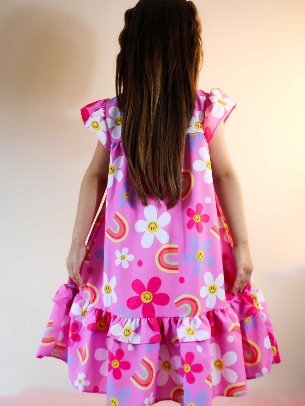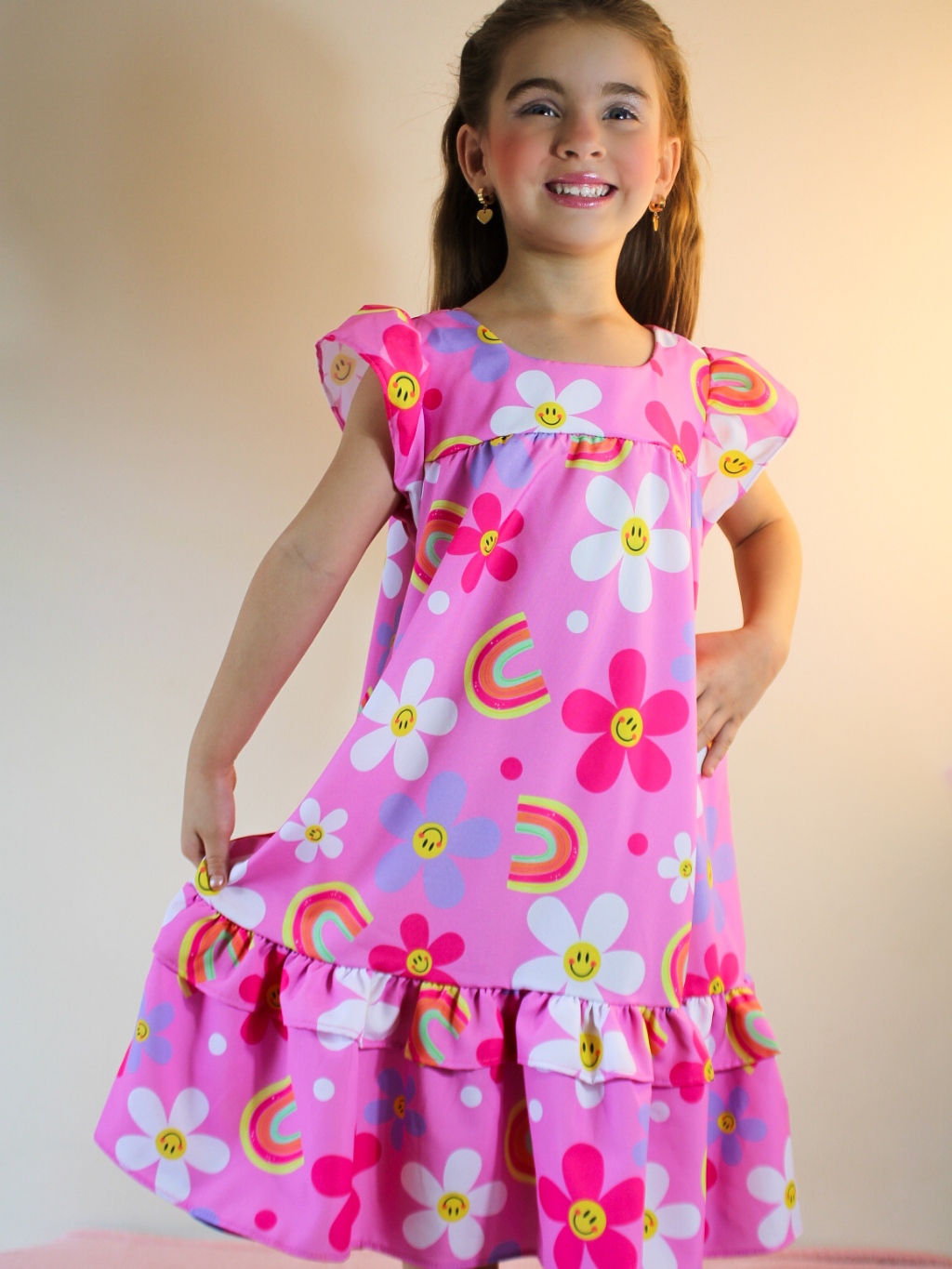 Vestido Lara Rosa Margarida e Arco Iris 01 ao 14 Anos Festa Casual Solto Rodado Modinha Menina