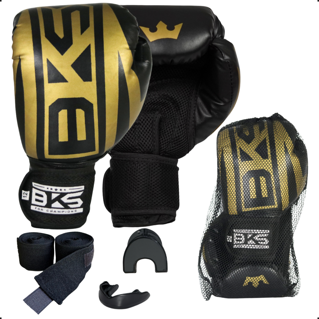 Kit Boxe Muay Thai Bks Profissional Luva + Bandagem 3m + Bucal Moldavel