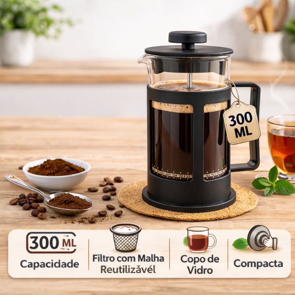 Cafeteira Prensa Francesa 300ml French Press Vidro Café Chá Infusão