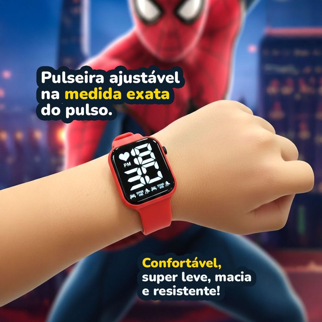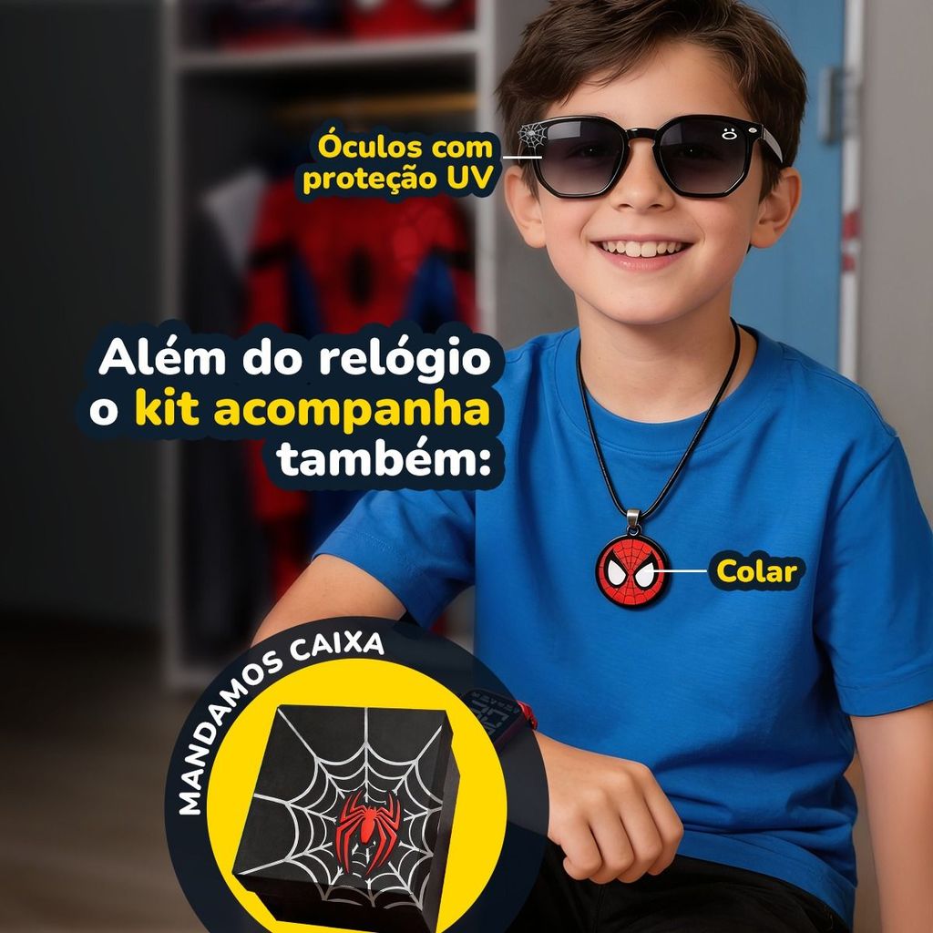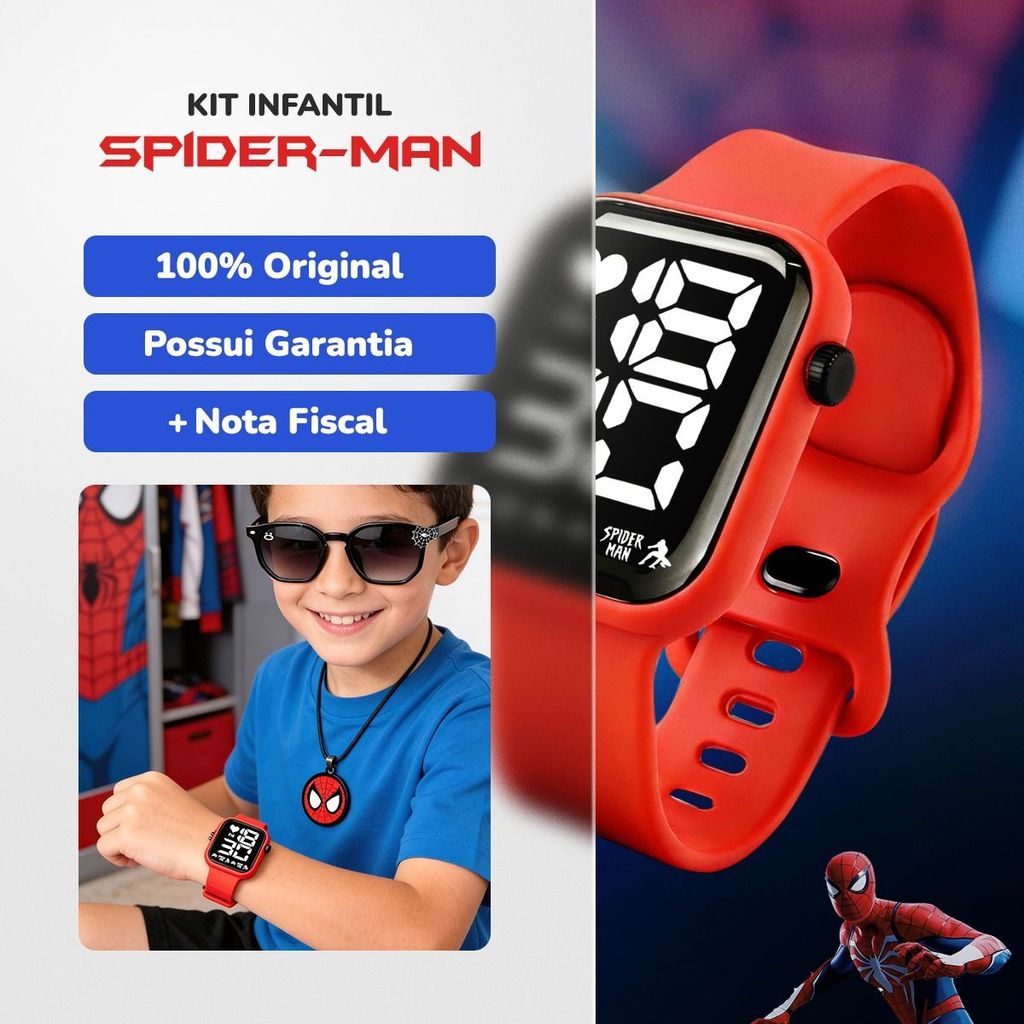 Relogio Digital Infantil Aranha Led + Colar original data esportivo luz ajustavel criança presente