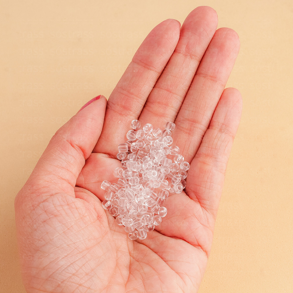 Miçanga de Vidro 4mm Cristal. 445g - 5.850 Peças