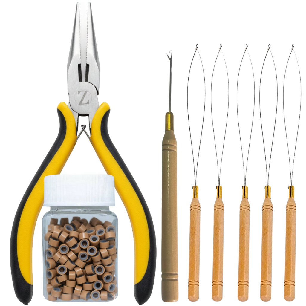Kit Mega Hair com Alicate Reto + Agulhas e 500 Microlinks