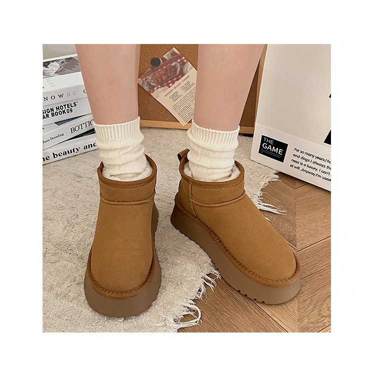 Muffin botas de neve de sola grossa feminina 2025 novo estilo inverno forro de lã sapatos femininos aumentando sapatos d