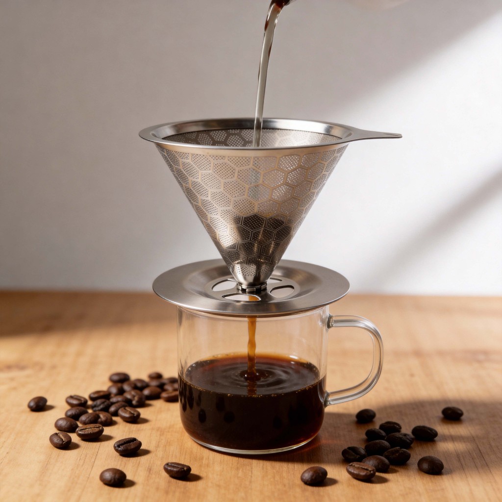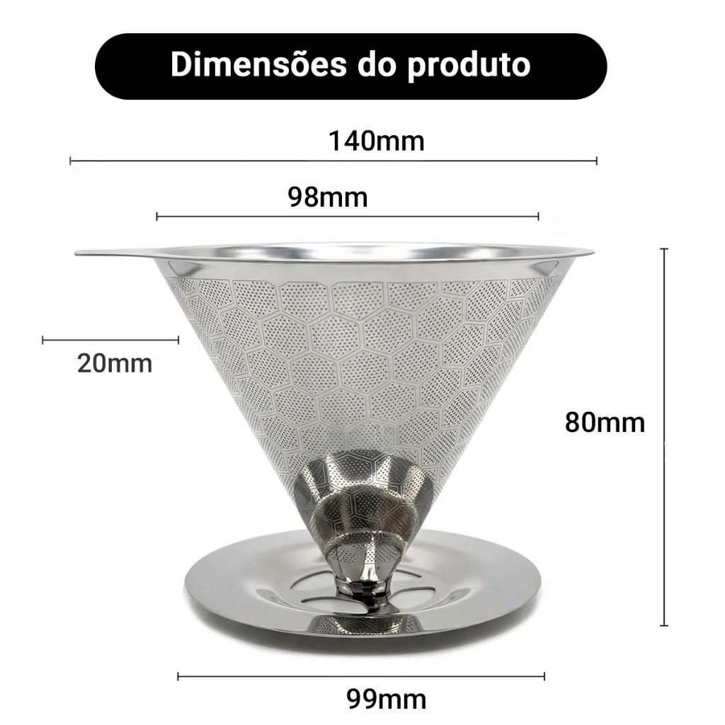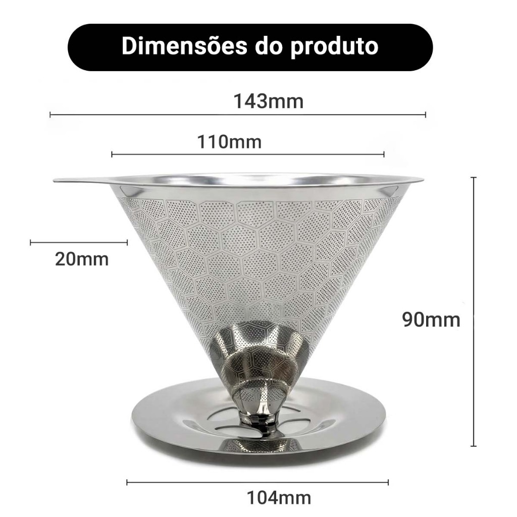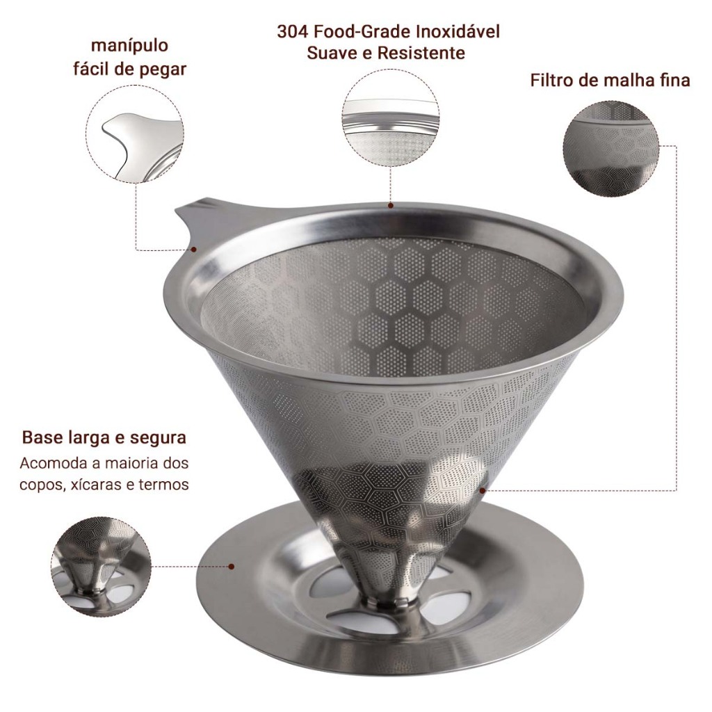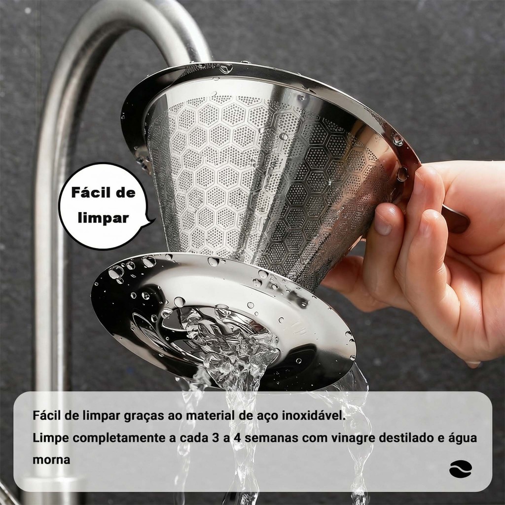 Filtro de café portátil e removível em aço inoxidável, durável, adequado para uso doméstico e em viagens
