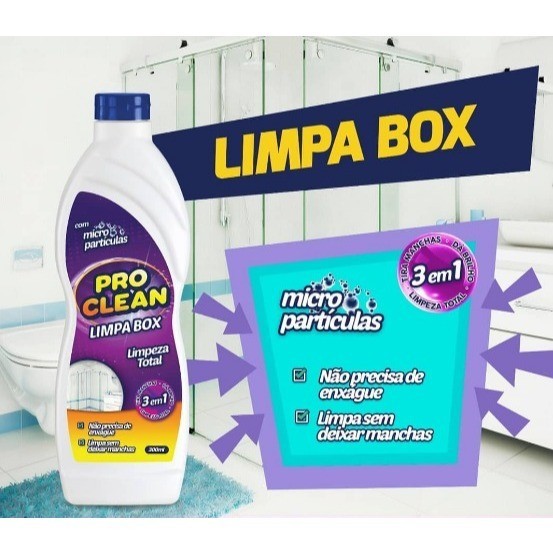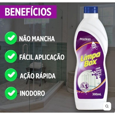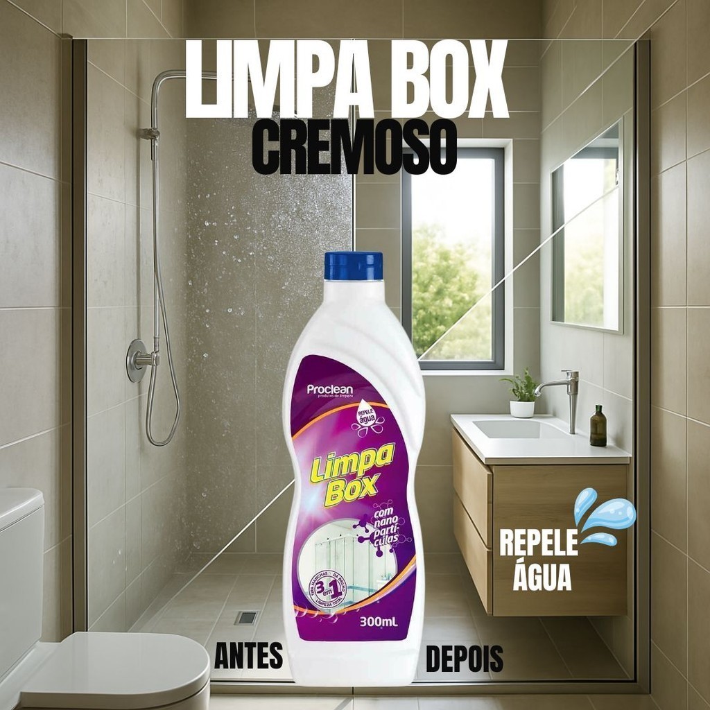 LIMPA BOX DE VIDRO LIMPA BOX BANHEIRO REPELE AGUA TIRA AS MANCHAS MELHORA O BRILHO 300ML