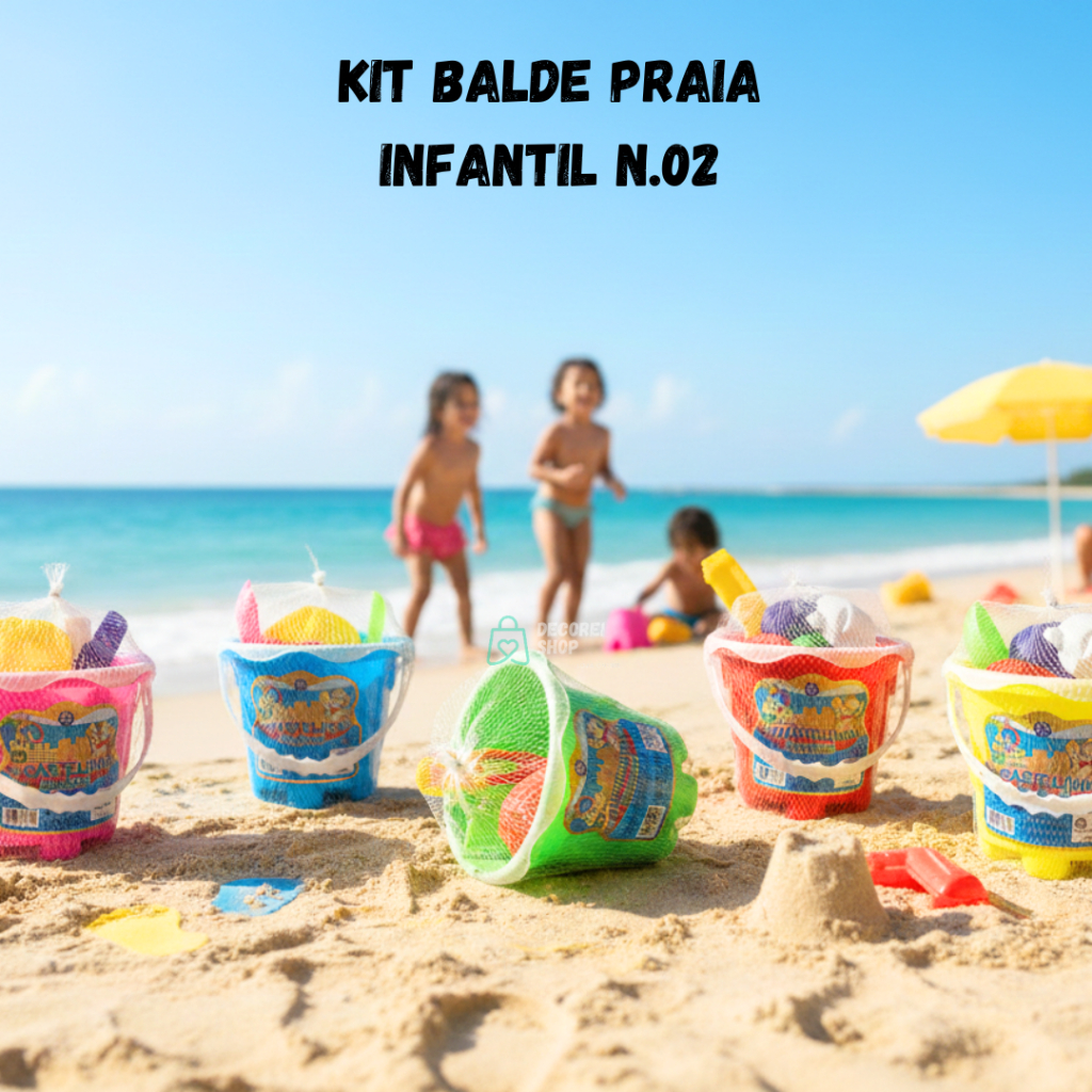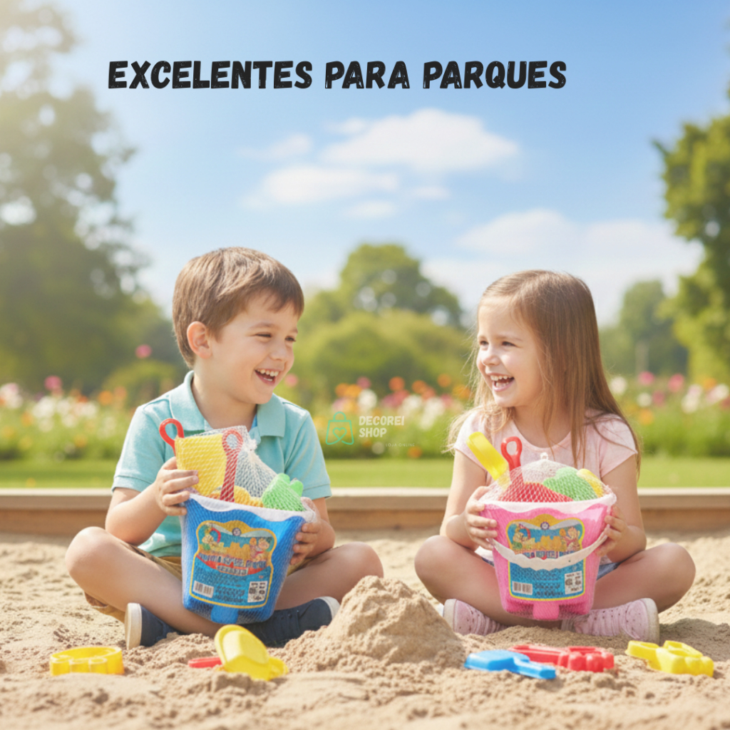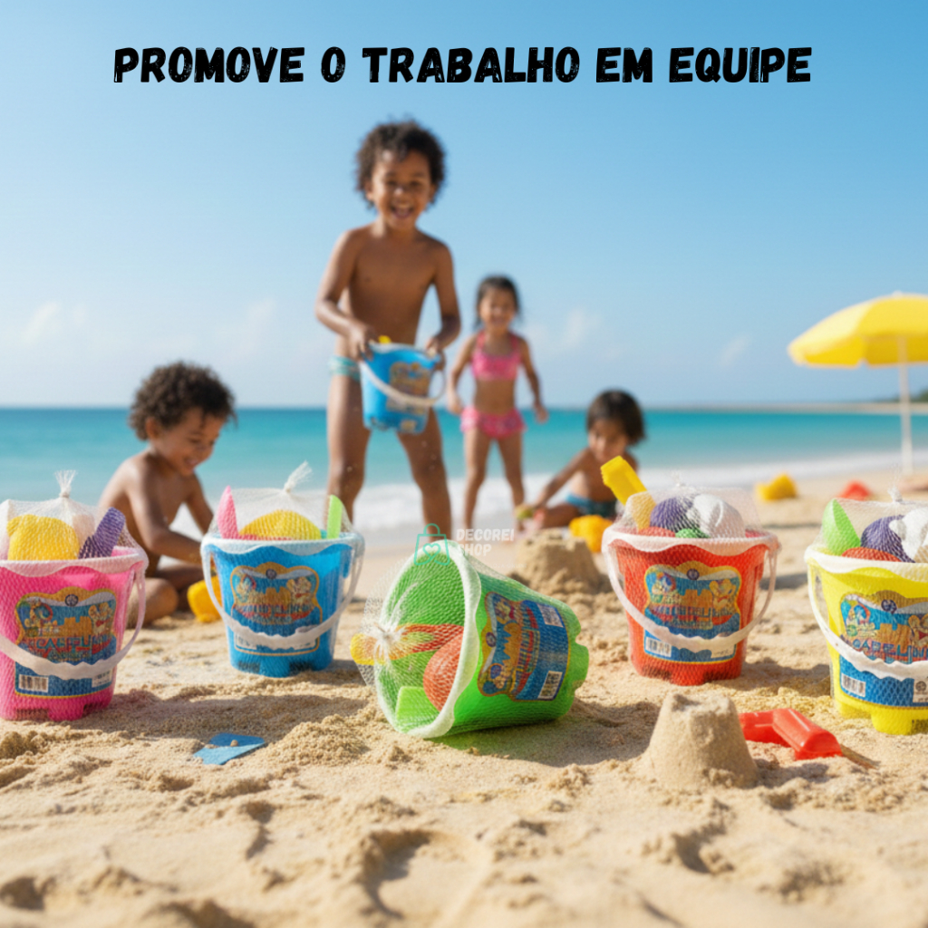 Kit Baldinho Balde Praia Infantil com Pá e Formas Cores Diversas– Brinquedo para Crianças Praia e Piscina