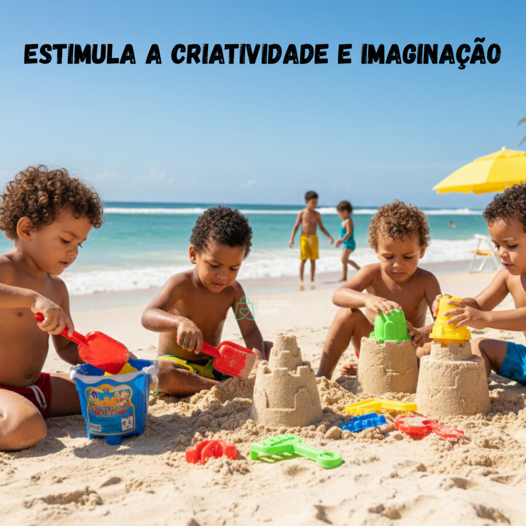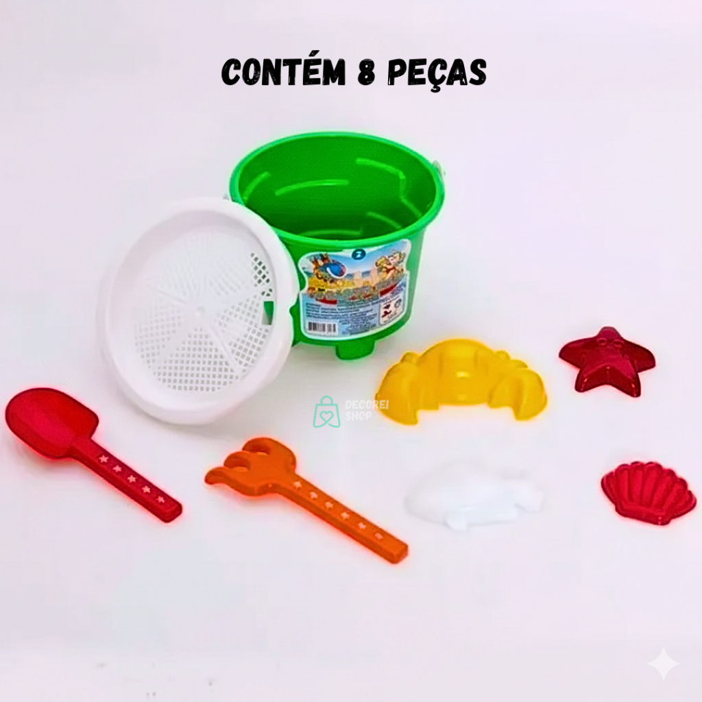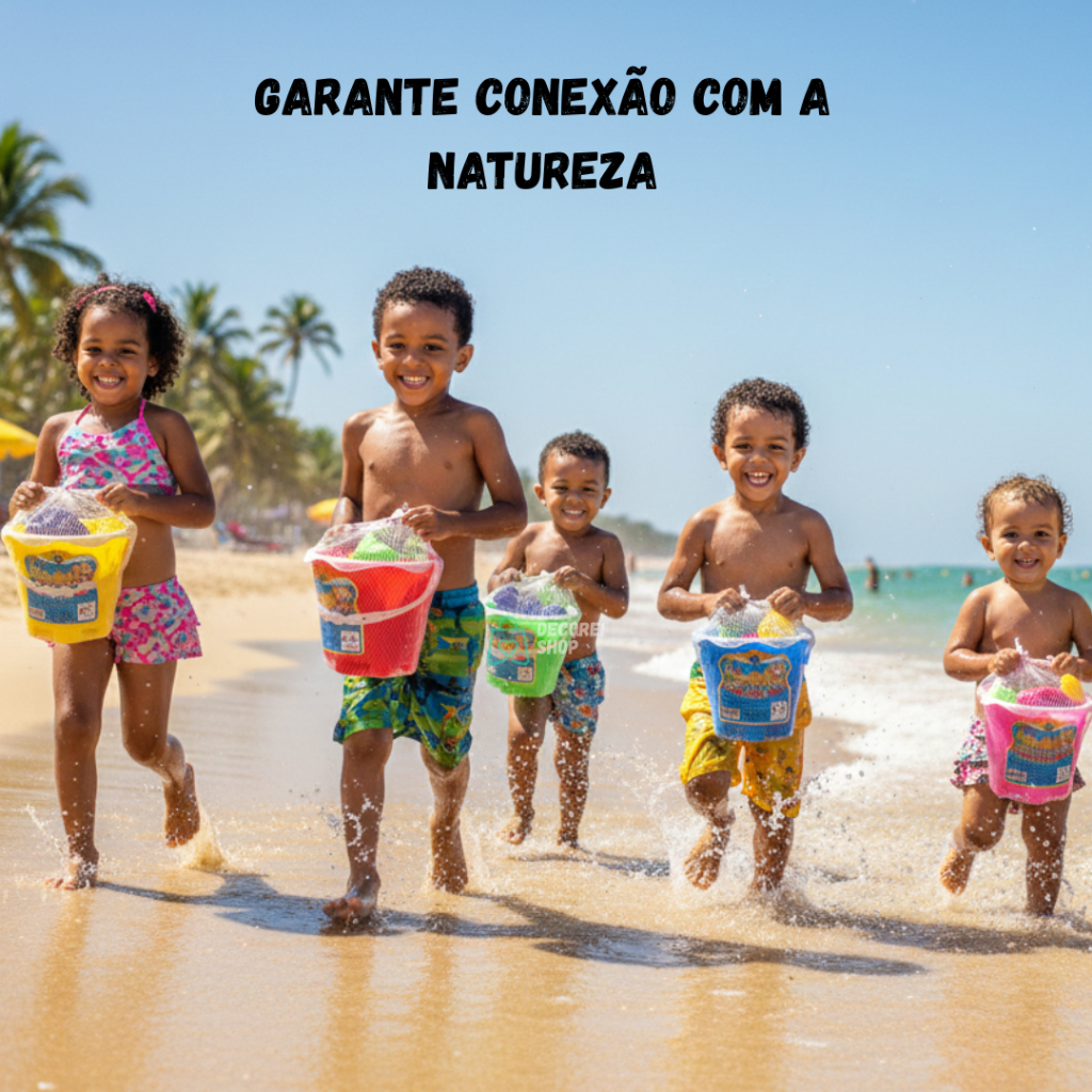 Kit Baldinho Balde Praia Infantil com Pá e Formas Cores Diversas– Brinquedo para Crianças Praia e Piscina