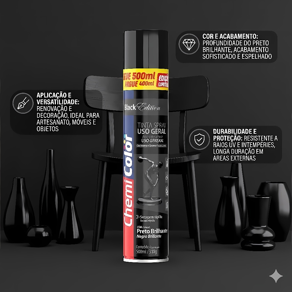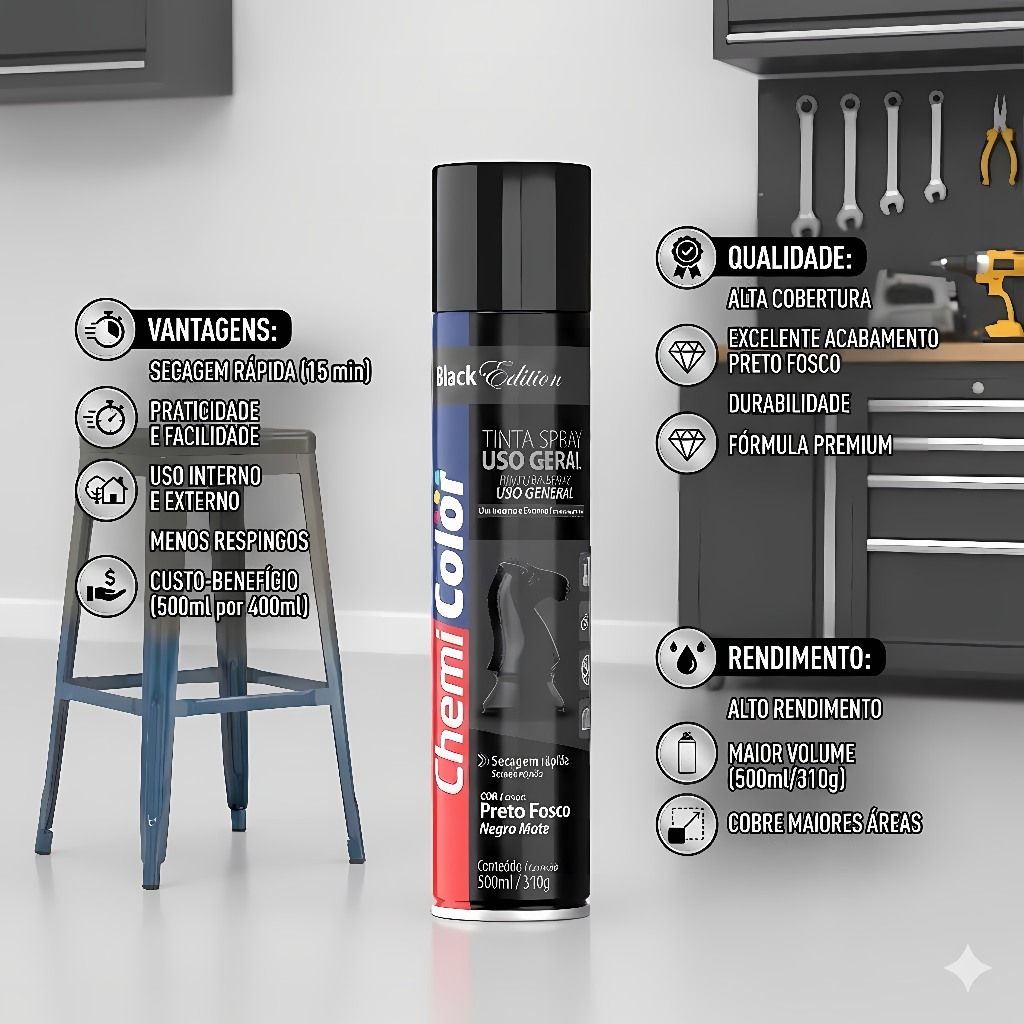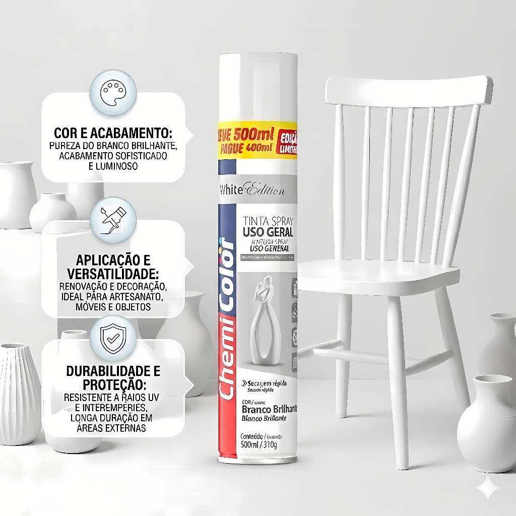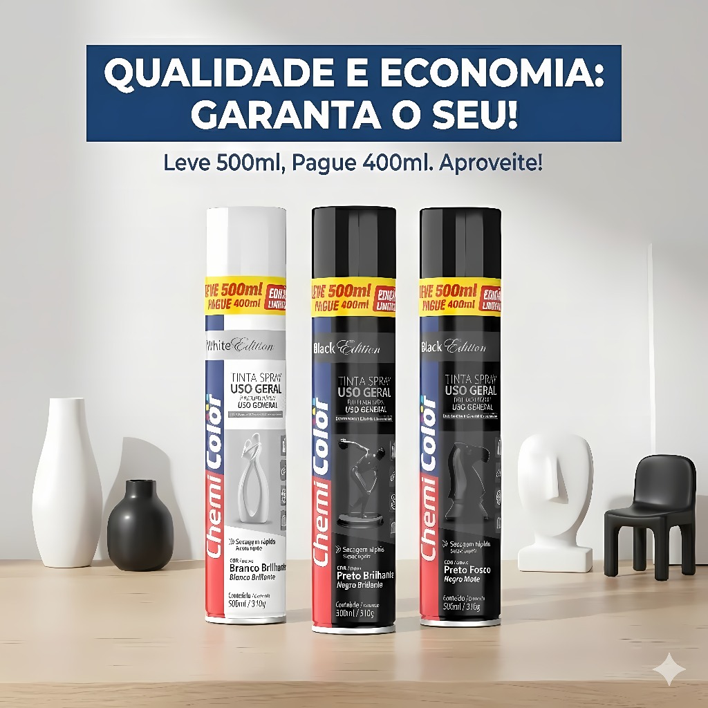 Tinta Spray Uso Geral Metal Madeira Plástico Cores 500ml Chemicolor