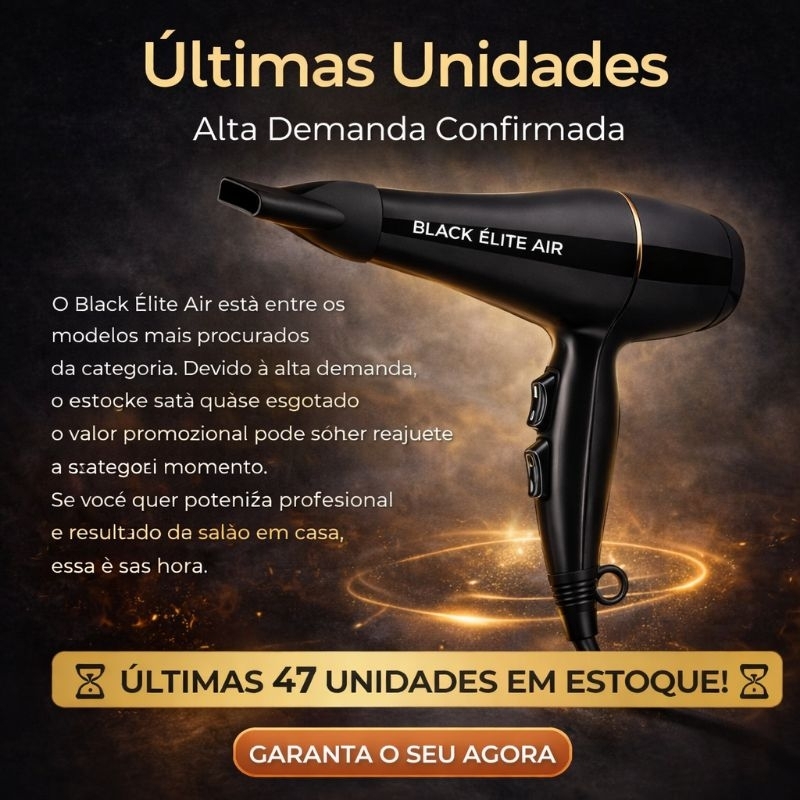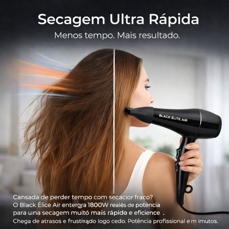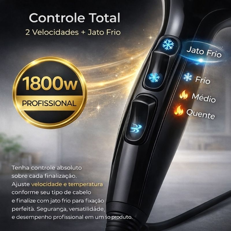 Secador de Cabelo Profissional 1800W 127V Preto com Jato Frio e Bocal