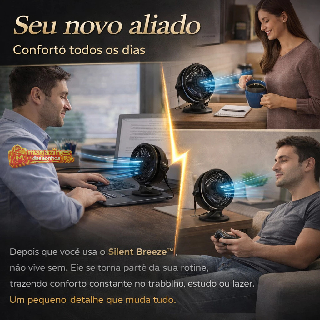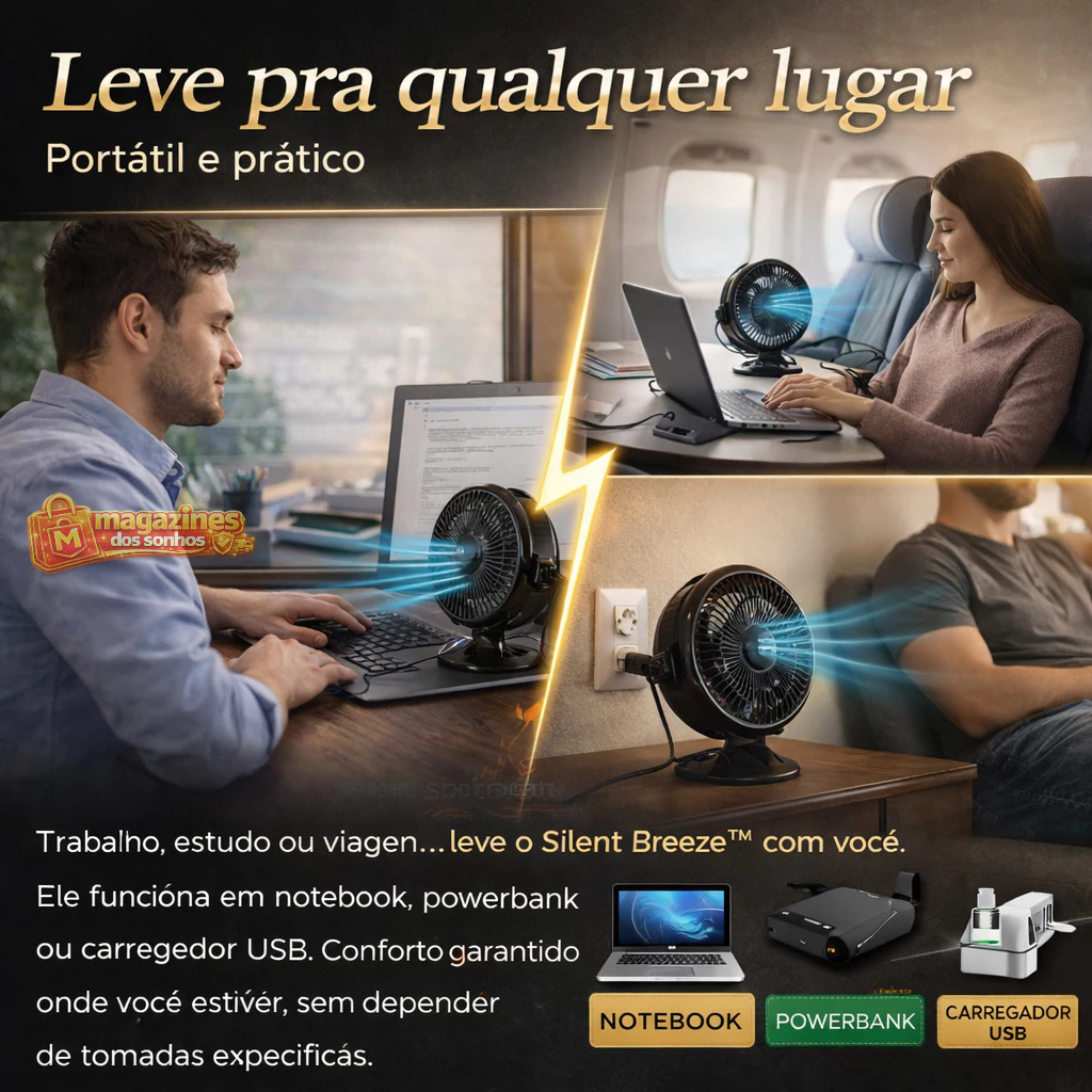 Ventilador Portátil USB Silencioso Compacto Silent Breeze™ Mesa Forte Potente Notebook Escritório