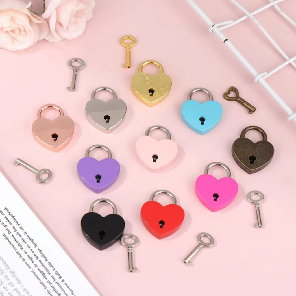 Mini Cadeado Coração Com Chave Pequeno Diário Bolsa Decoração Vintage