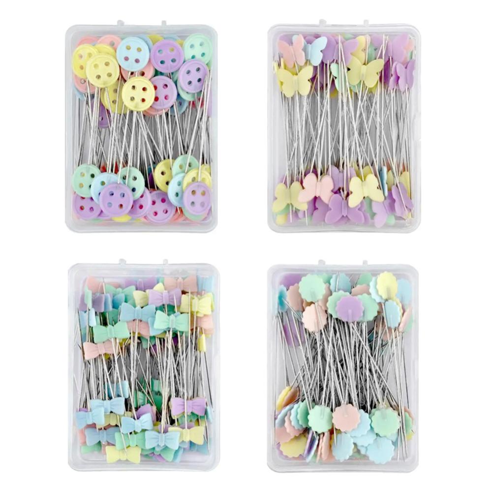 HW 100Pcs Alfinetes De Costura Cabeça De Botão Borboleta Florais Posicionamento Faça Você Mesmo Agulhas De Marcação De Roupas Feitas À Mão