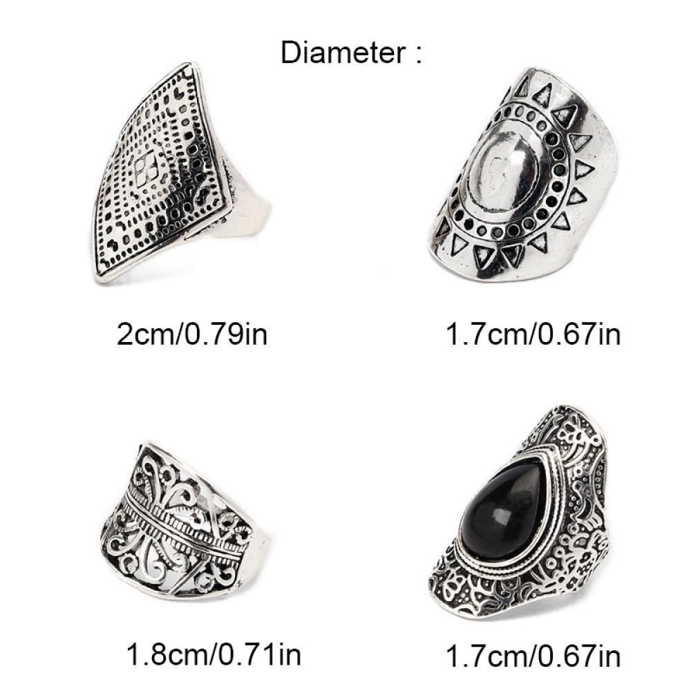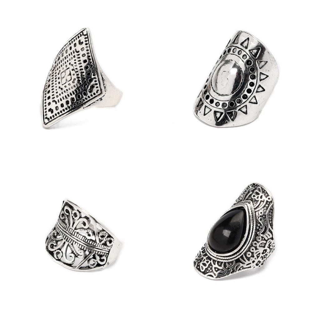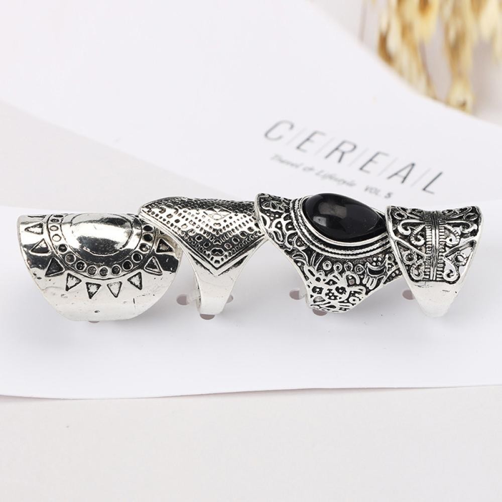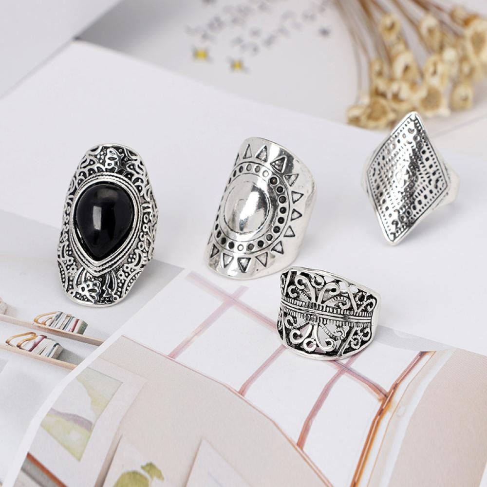 HW 4Pcs/Set Vintage Prata Boho Cigano Anel Étnico Gema Oca Esculpida Diamante Midi Knuckle Anéis Jóias Mulher N4S6