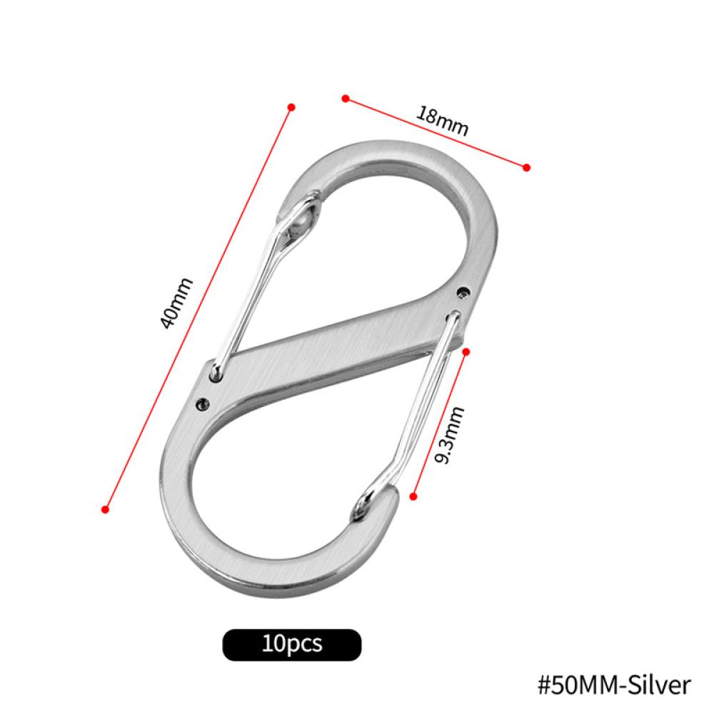 Car HOME 10pcs Tipo S Mosquetão De Aço Inoxidável Com Trava Mini Chaveiro Gancho Anti-Roubo Mochila De Camping Exterior Ferramenta De Fivela De Chave Q2Z6