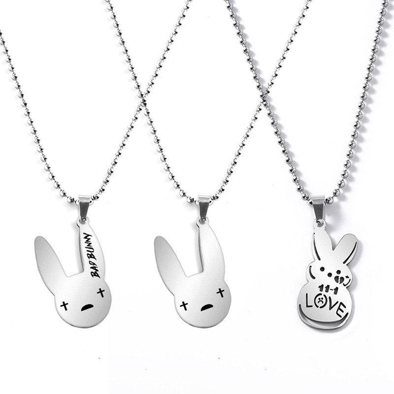 Coelho Mau Bonito Simples Clavícula Corrente De Aço Inoxidável Rufião Pingente Colar Para Homens Mulheres Jóias Presente