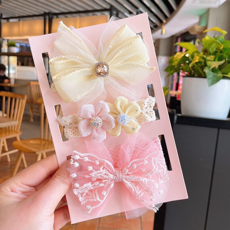 3pçs/Conjunto Faixa De Cabelo Para Bebê Menina Recém-Nascido Princesa Laço Acessórios