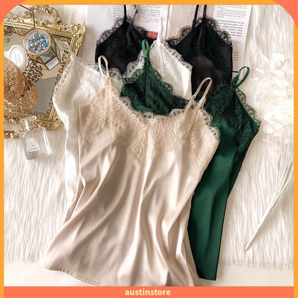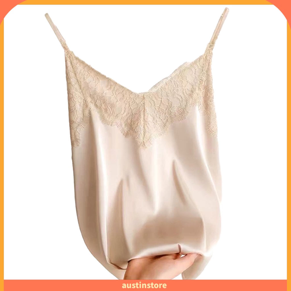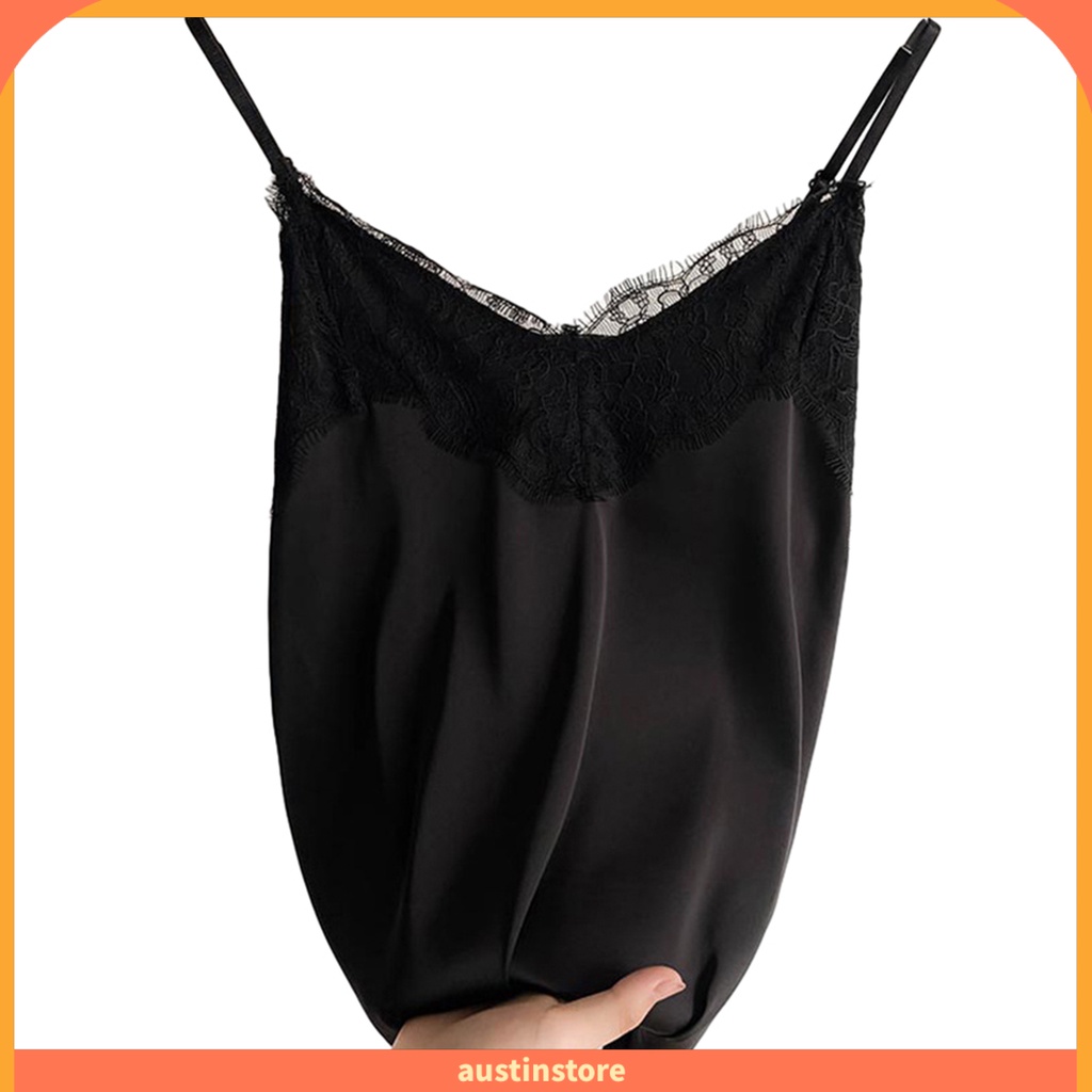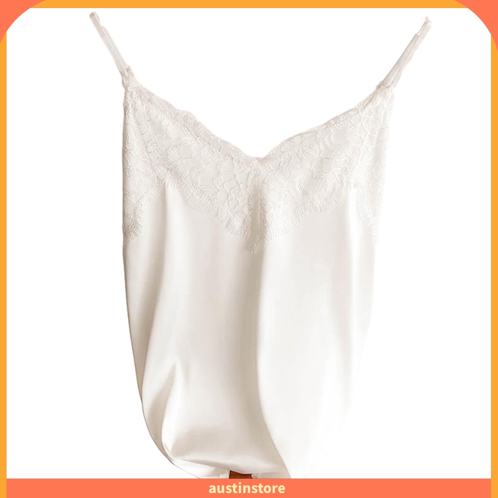 { Austinstore } Colete Feminino Com Renda Cor Sólida Sem Mangas Esparguete Correia V Pescoço Seda Macio Casual Mulher Camisole Top