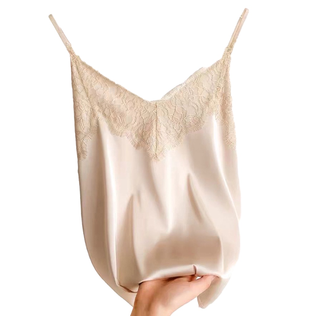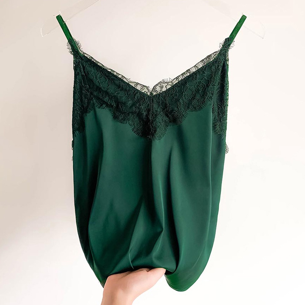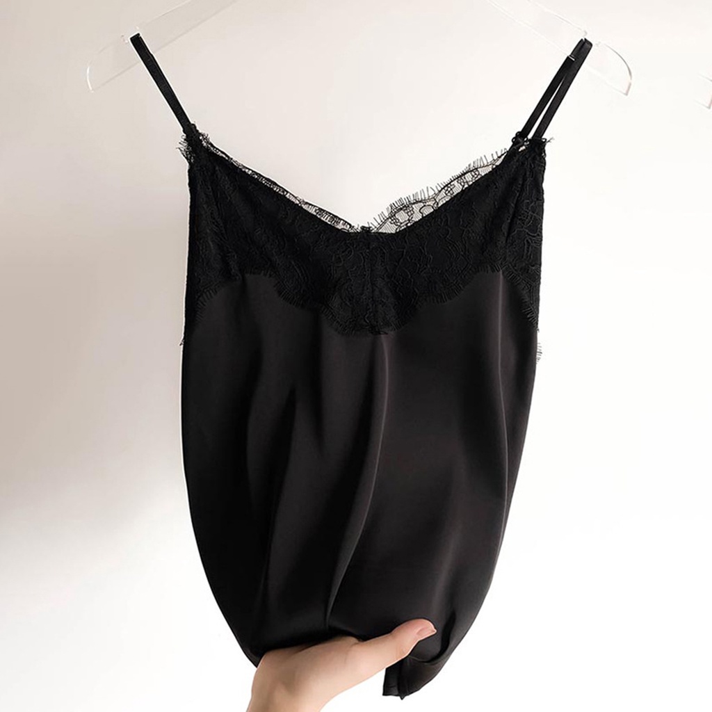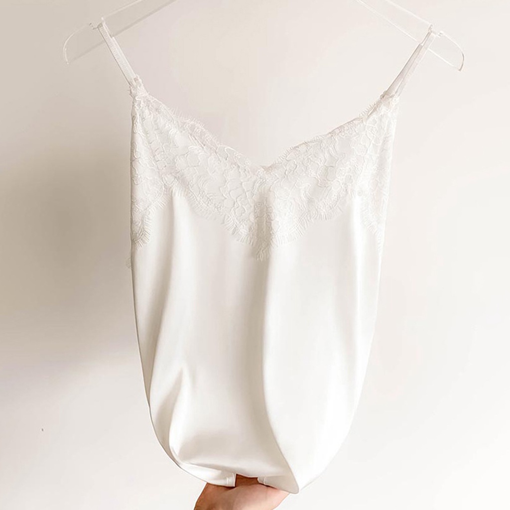 { Austinstore } Colete Feminino Com Renda Cor Sólida Sem Mangas Esparguete Correia V Pescoço Seda Macio Casual Mulher Camisole Top