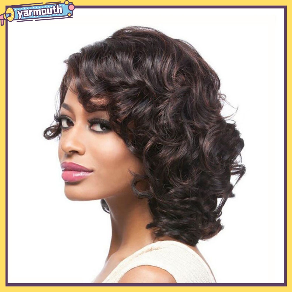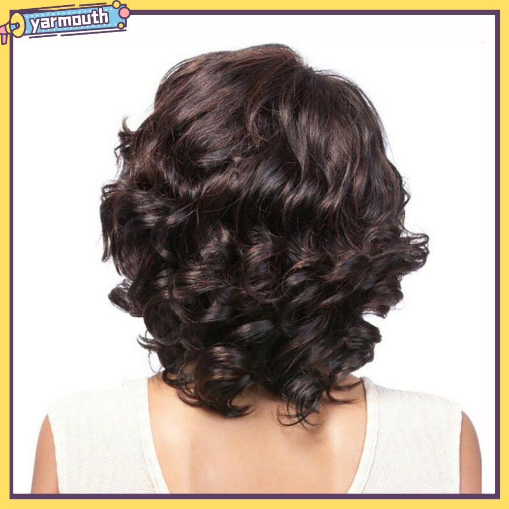 Yar- Peruca Curta Moda Cabeleira Curto Enrolado Sintética Fibra Charmosa Feminina Festa Diária Pedaço De Cabelo
