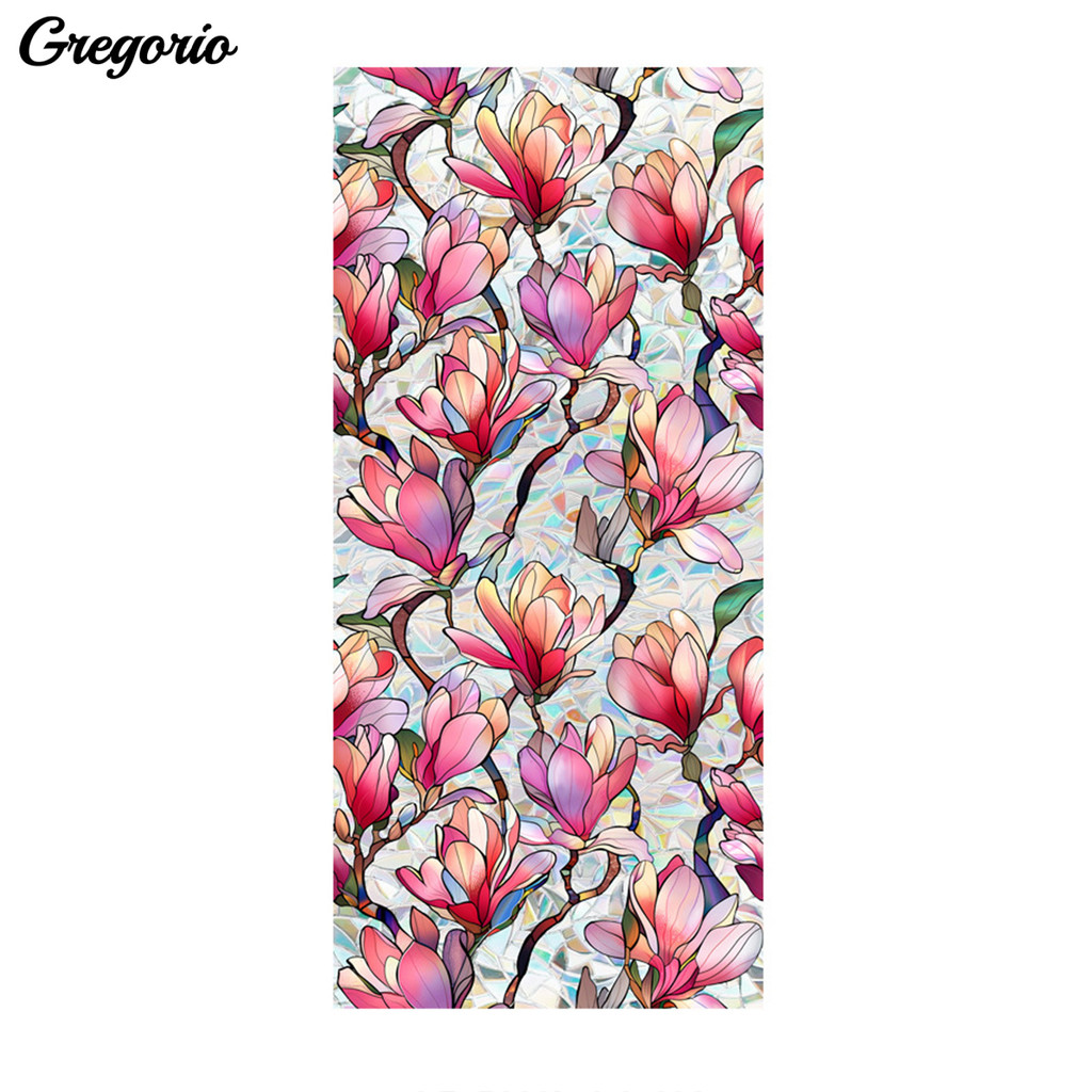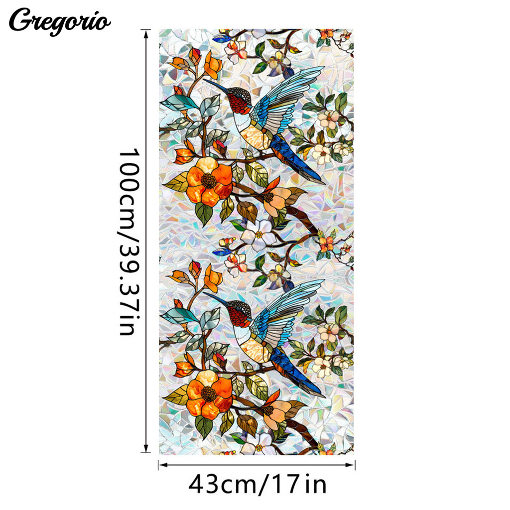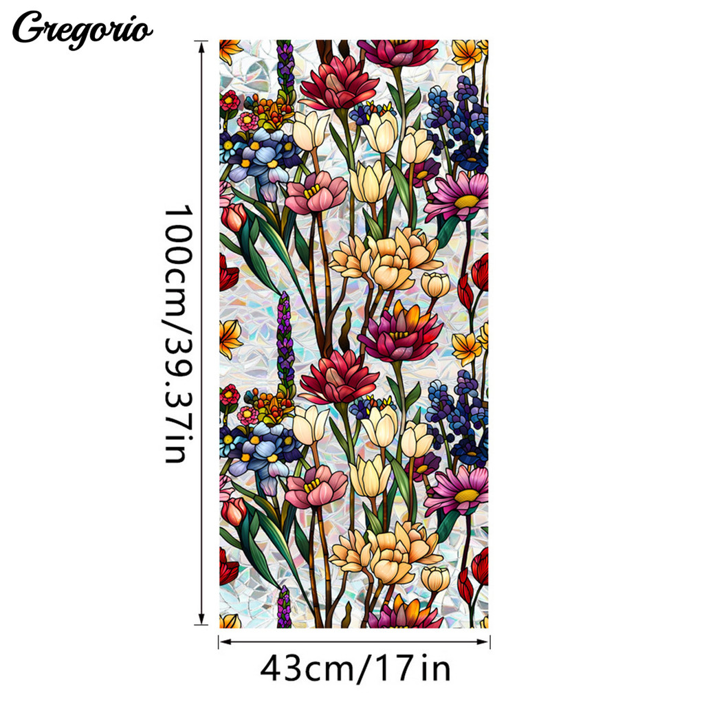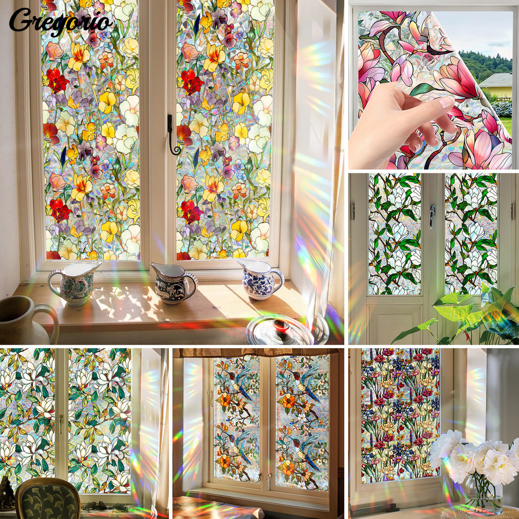 GRH-Flor Janela Filme De Privacidade Dupla Face Vitral Arco-Íris Sol