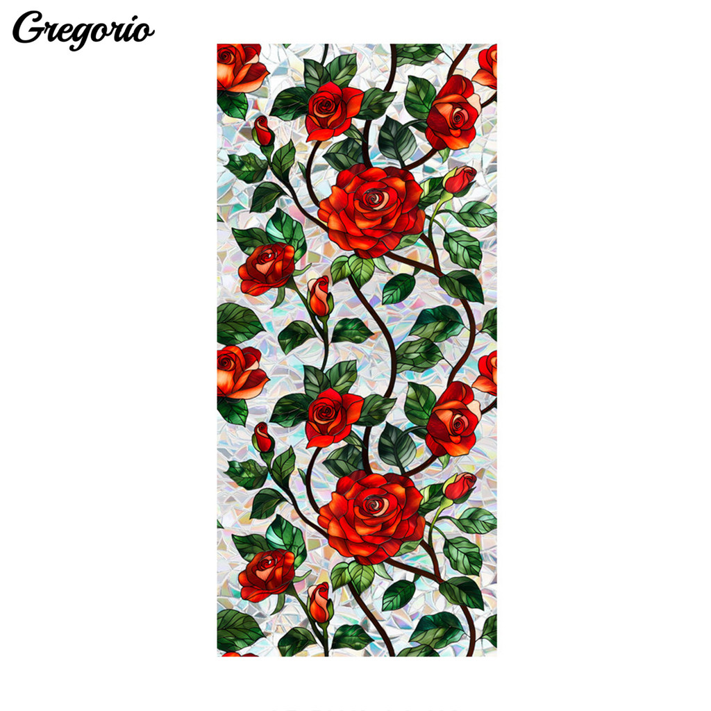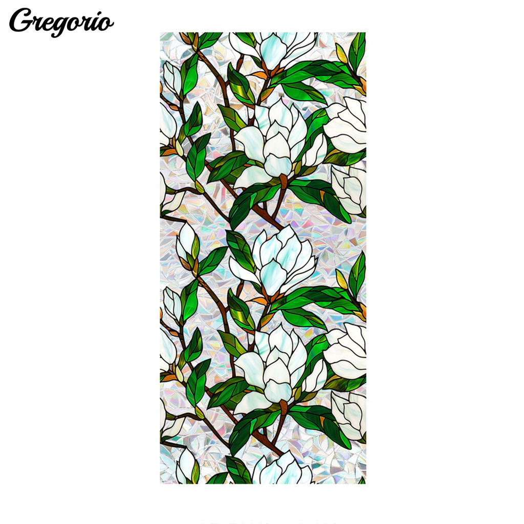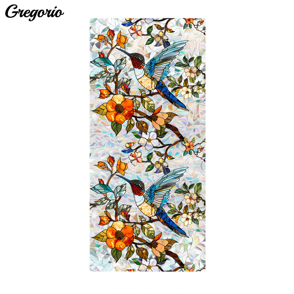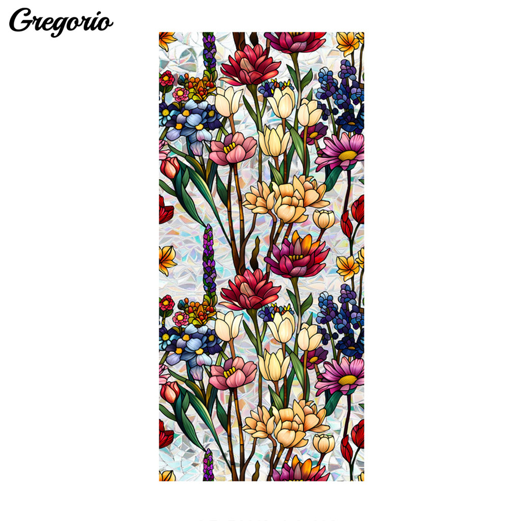 GRH-Flor Janela Filme De Privacidade Dupla Face Vitral Arco-Íris Sol