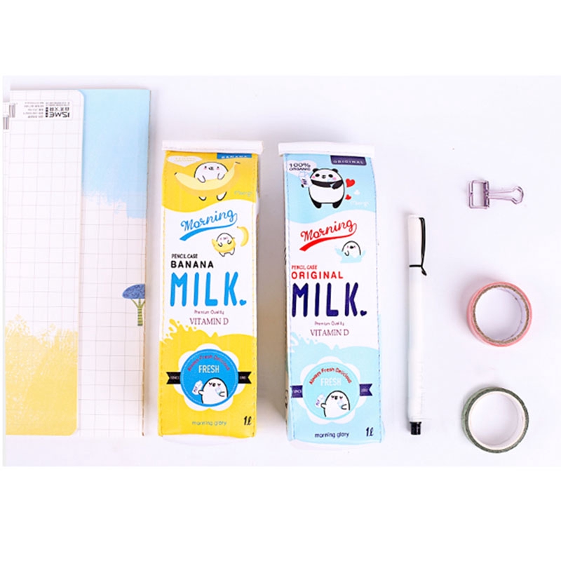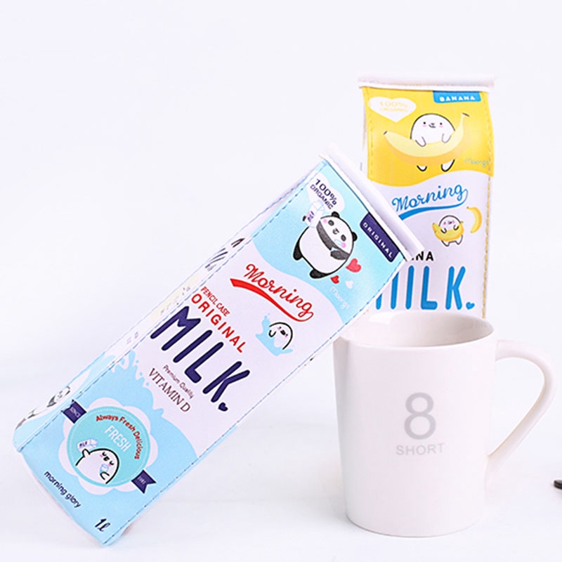 Saco De Lápis De Leite Criativo Bonito Armazenamento De Papelaria De Estudante