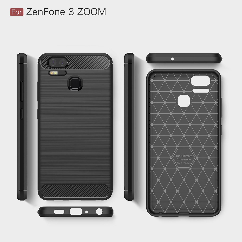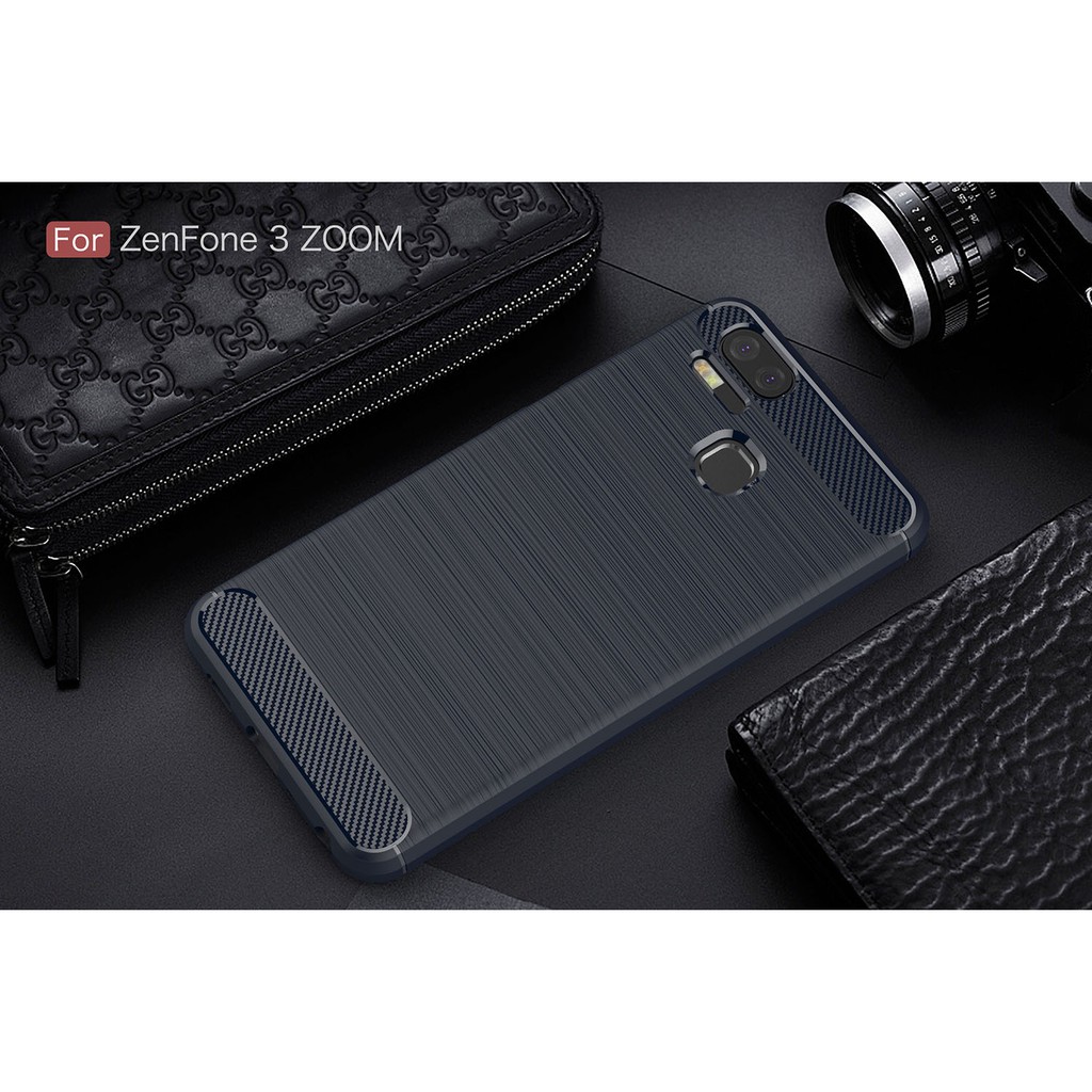 Asus Zenfone 3 Zoom ZE553KL Capa À Prova De Choque De Fibra De Carbono Tampa De Borracha De Silicone Textura Escovada