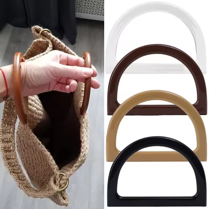 Alças Redondas De Madeira De Bambu Em Forma De D-Alça De Substituição De Bolsa Vintage Artesanal-Acessórios Para DIY