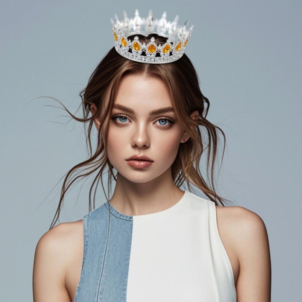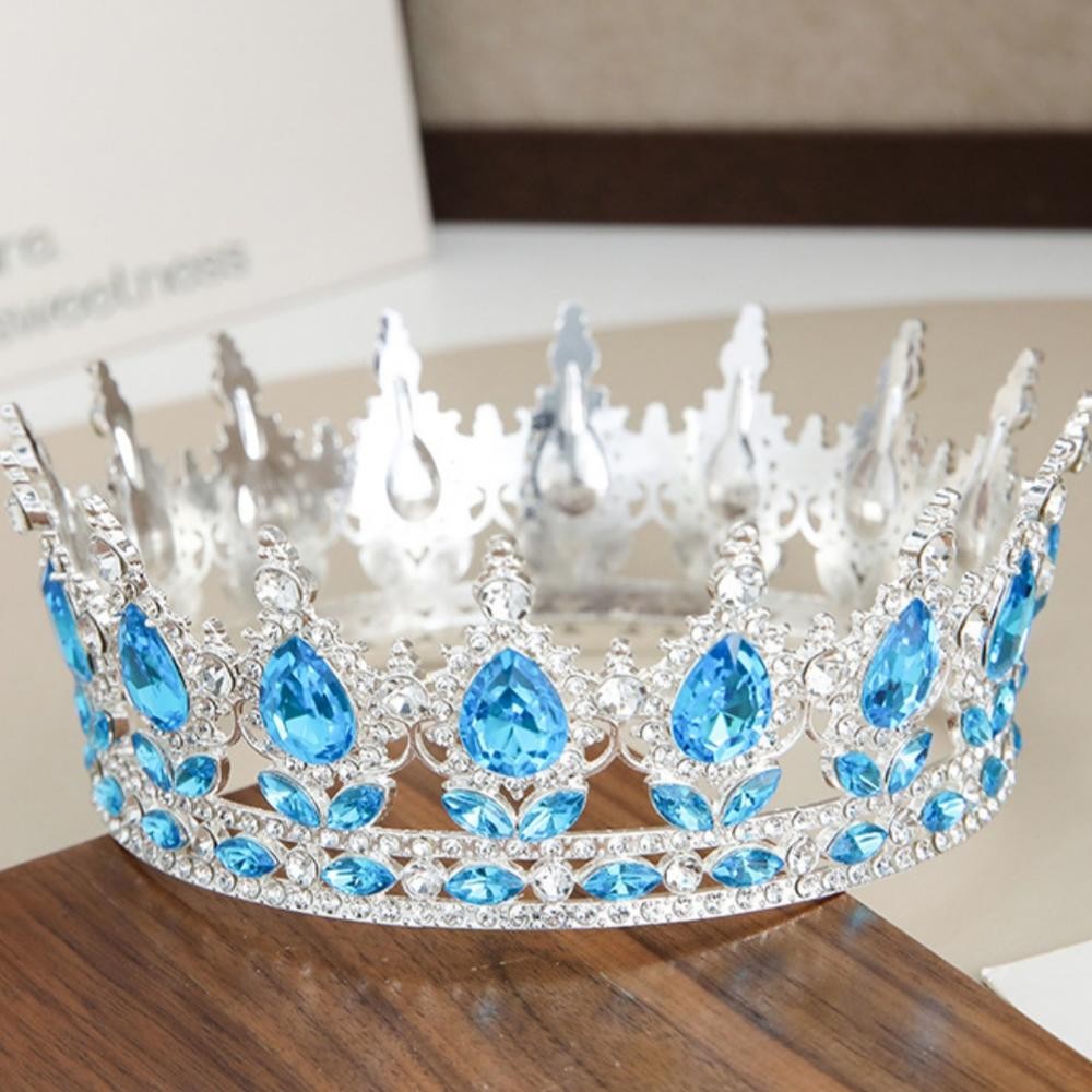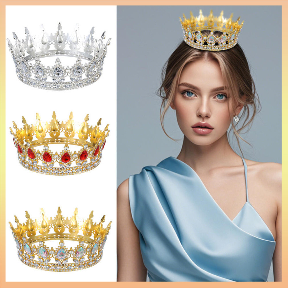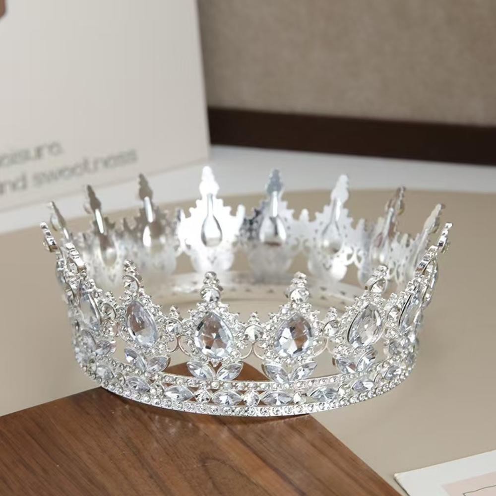 Europeu Princesa Rainha Tiara Redonda Barroco Concurso Coroa De Cristal Completa Nupcial Casamento Aniversário Bar Mitzv