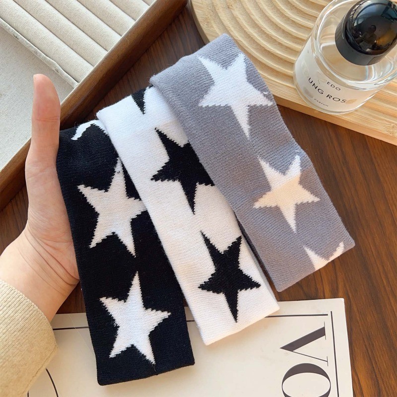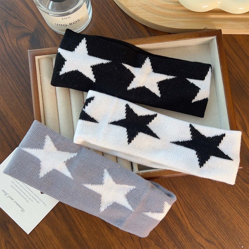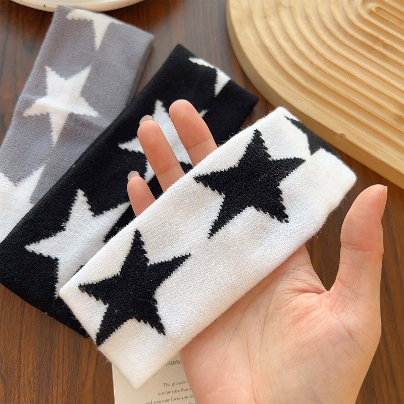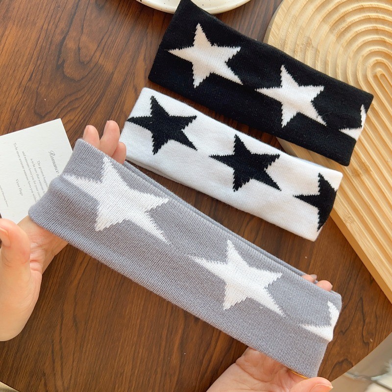 Faixa De Cabelo De Borda Larga Tricotada Estrela Masculina E Feminina – Argola Esportiva De Algodão Puro Para Meninas Pi