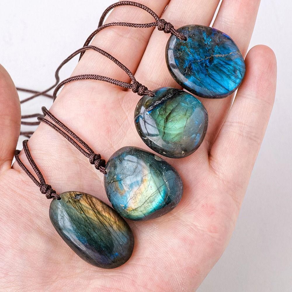 Pendente De Labradorita De Cristal BOLONI , Com Pingente De Labradorite Natural De Polimento De Pedra Crua De Corda , Es