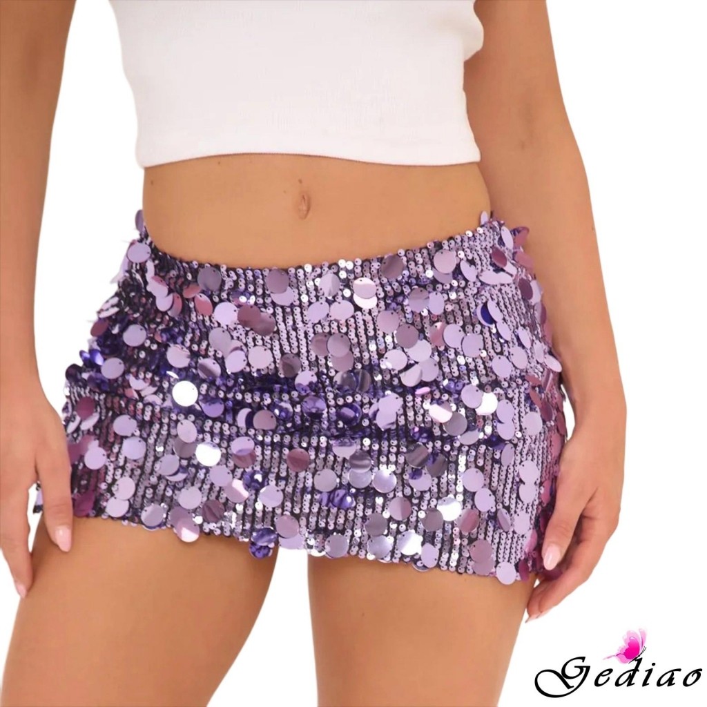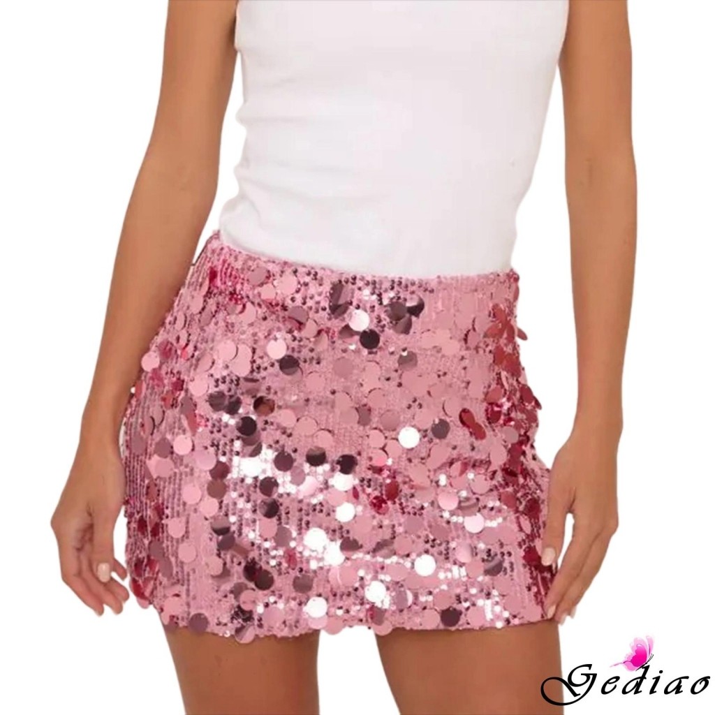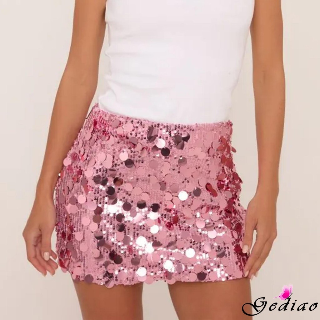 Minissaia Feminina De Lantejoulas Brilhantes , Cintura Média , Corte Justo , Bodycon , Saia Curta Para Trabalho De Festa