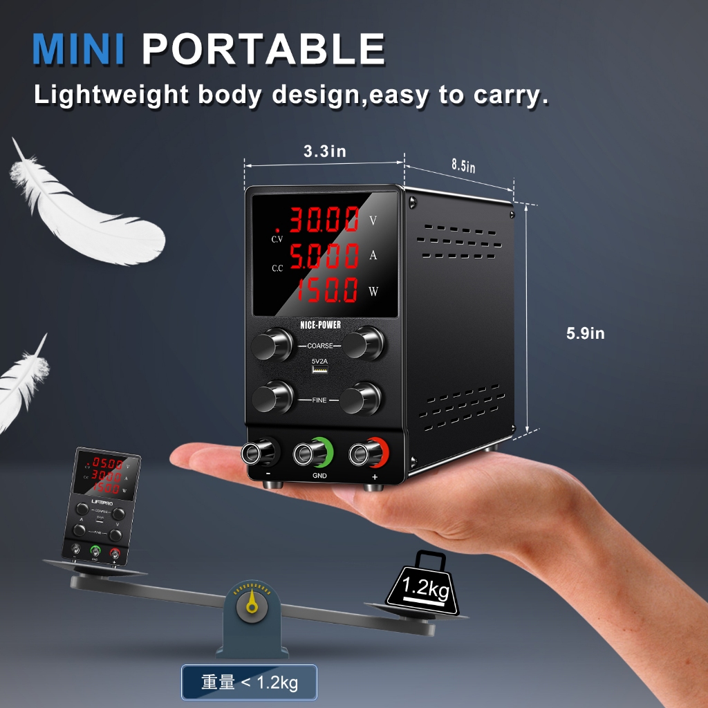 Fonte de Bancada NICE-POWER SPS305 30V 5A 150W Regulador de comutação variável de alta precisão com exibição de 4 dígito