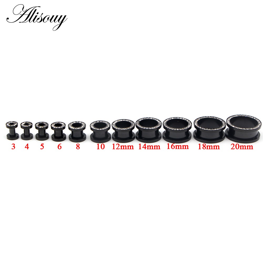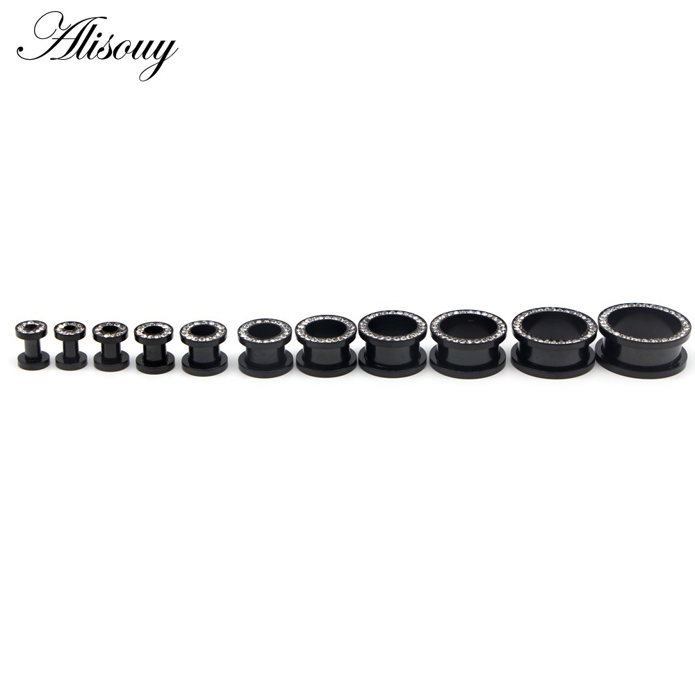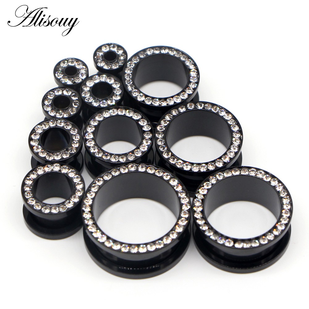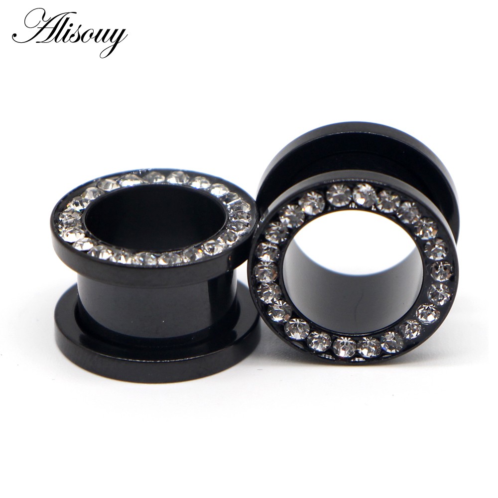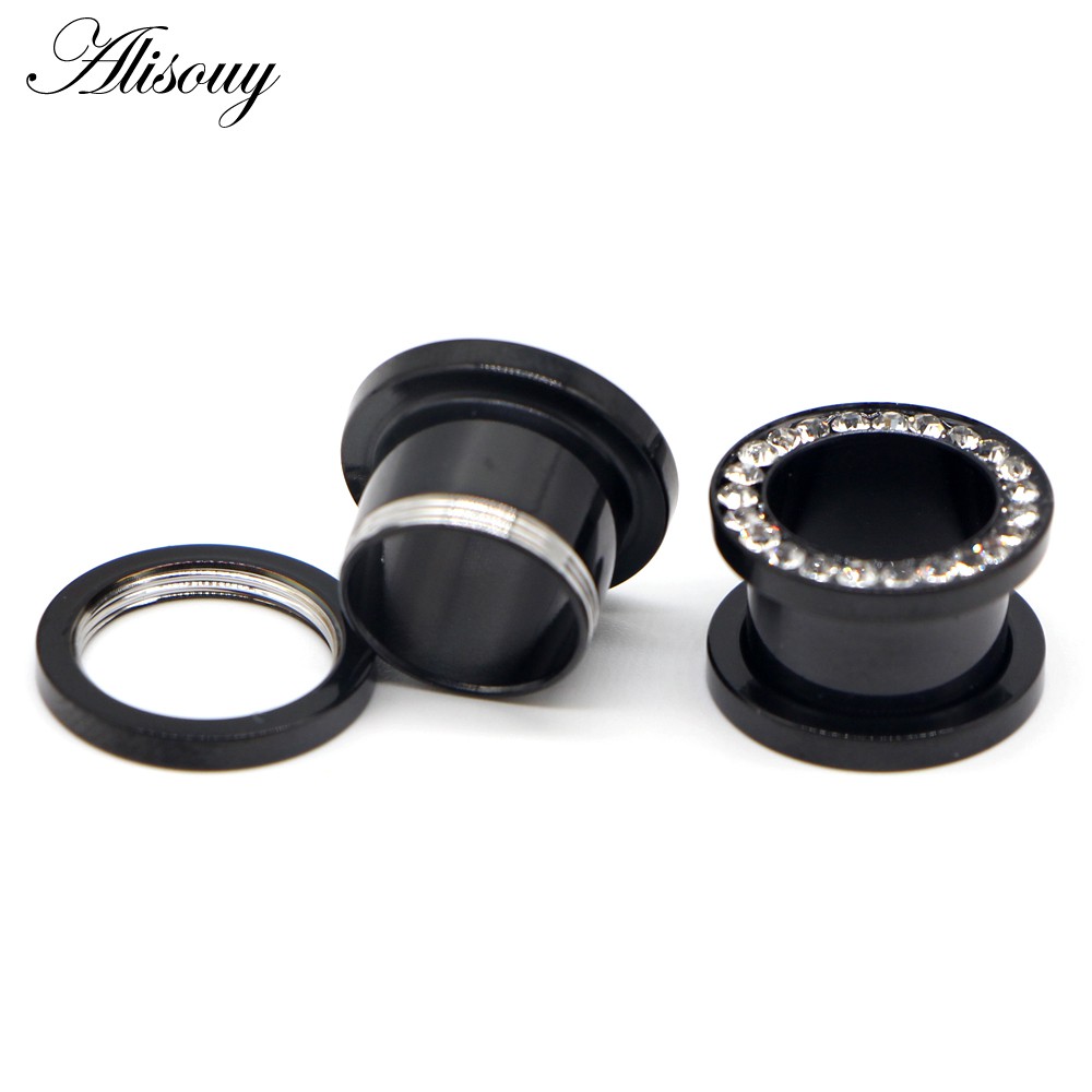 Alisouy 2 Peças De Cristal De Aço Inoxidável Anodizado Parafuso Preto Túnel De Carne Medidores De Plugue De Ouvido Joias