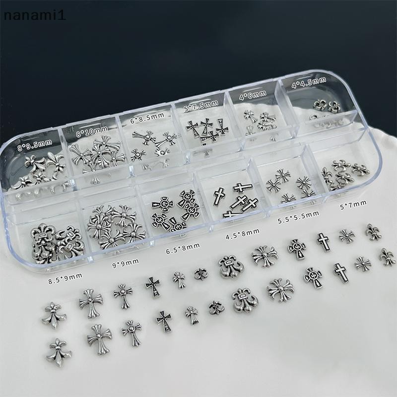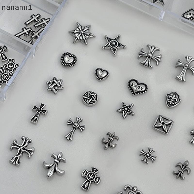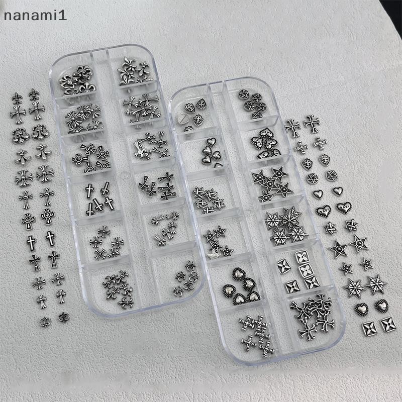 nanami1 60 Unidades/12 Grades Misturadas 3D Punk Prata Coração Cruz Metal Manicure Decoração De Unhas Retrô Design Difer