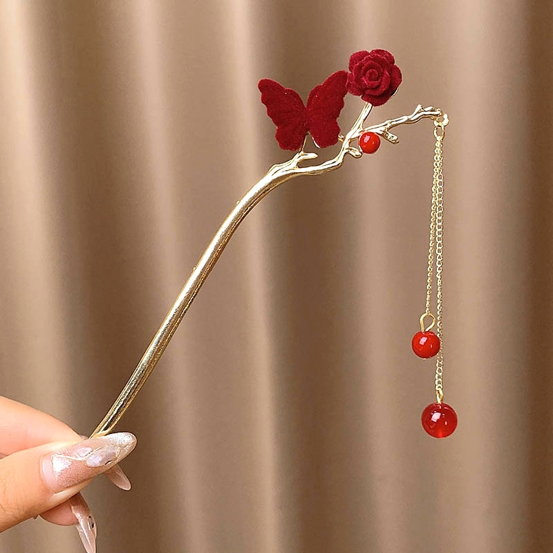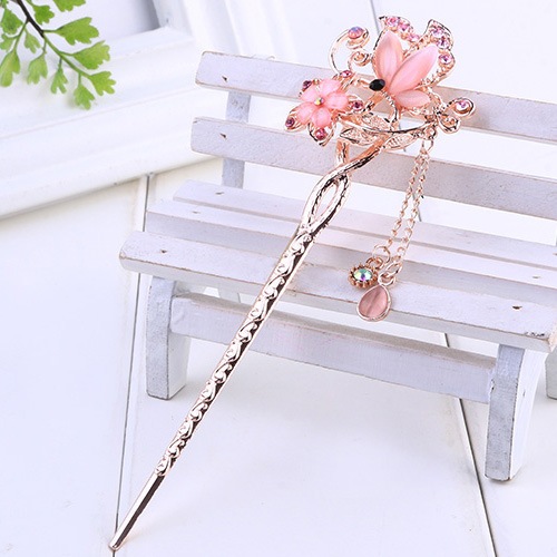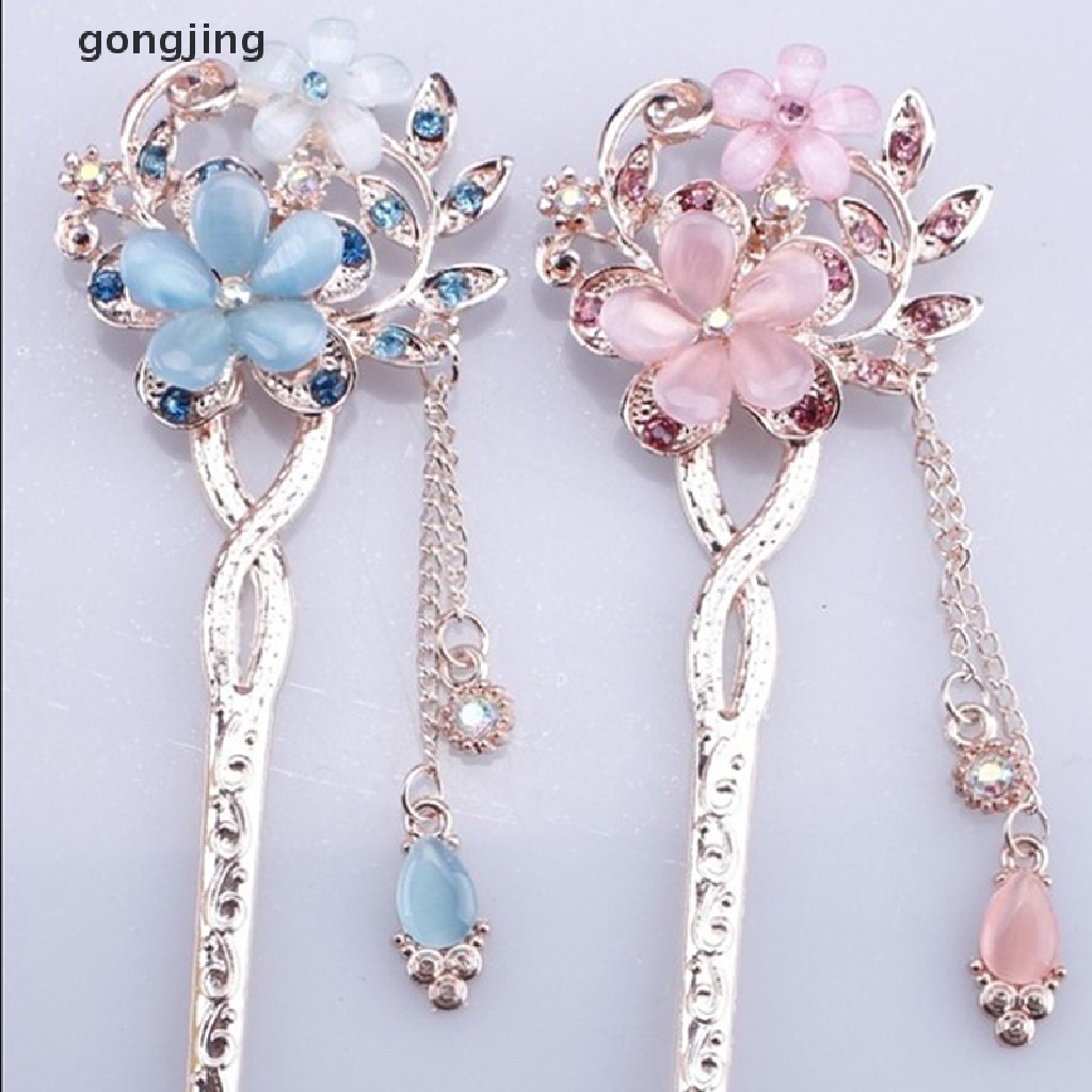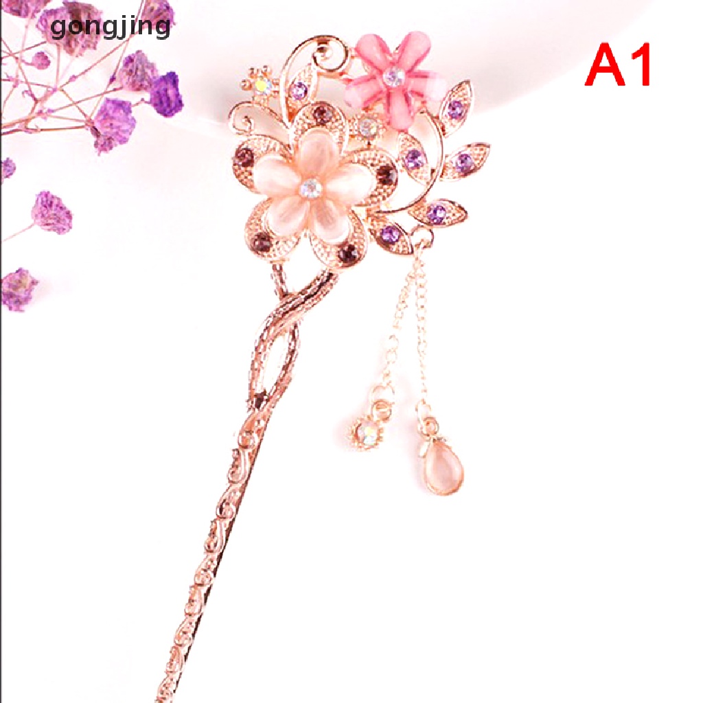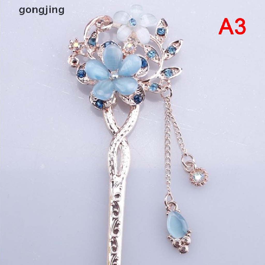 gongjing Pino De Cabelo Com Pedra De Olho , Flor Dupla , Strass , Bastão BR