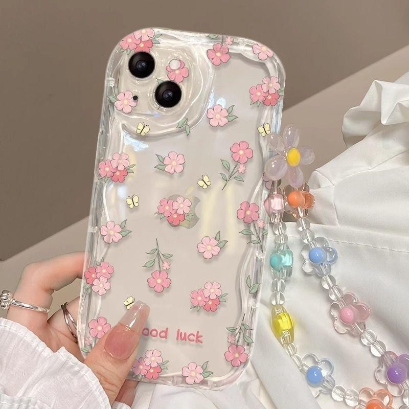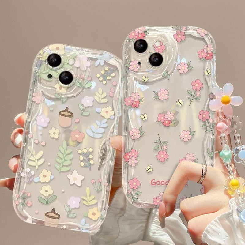 Caixa De Flores Com Cordão De Corrente Para IPhone 13 12 11 Pro Max Mini 6 6S 7 8 Plus X XS XR XSMAX INS Silicone Transparente 3D Ondulado De Borda Curva