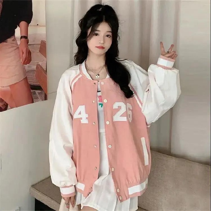 Casaco Feminino Uniforme De Beisebol Solto Versão Coreana Moda Primavera E Outono