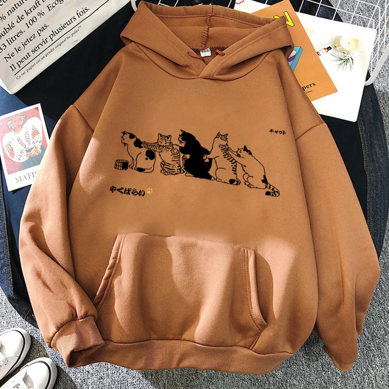 Moletom De Casal Fofo Estampa De Gato Simples E Versátil Japonês Largo Casual Masculino Feminino