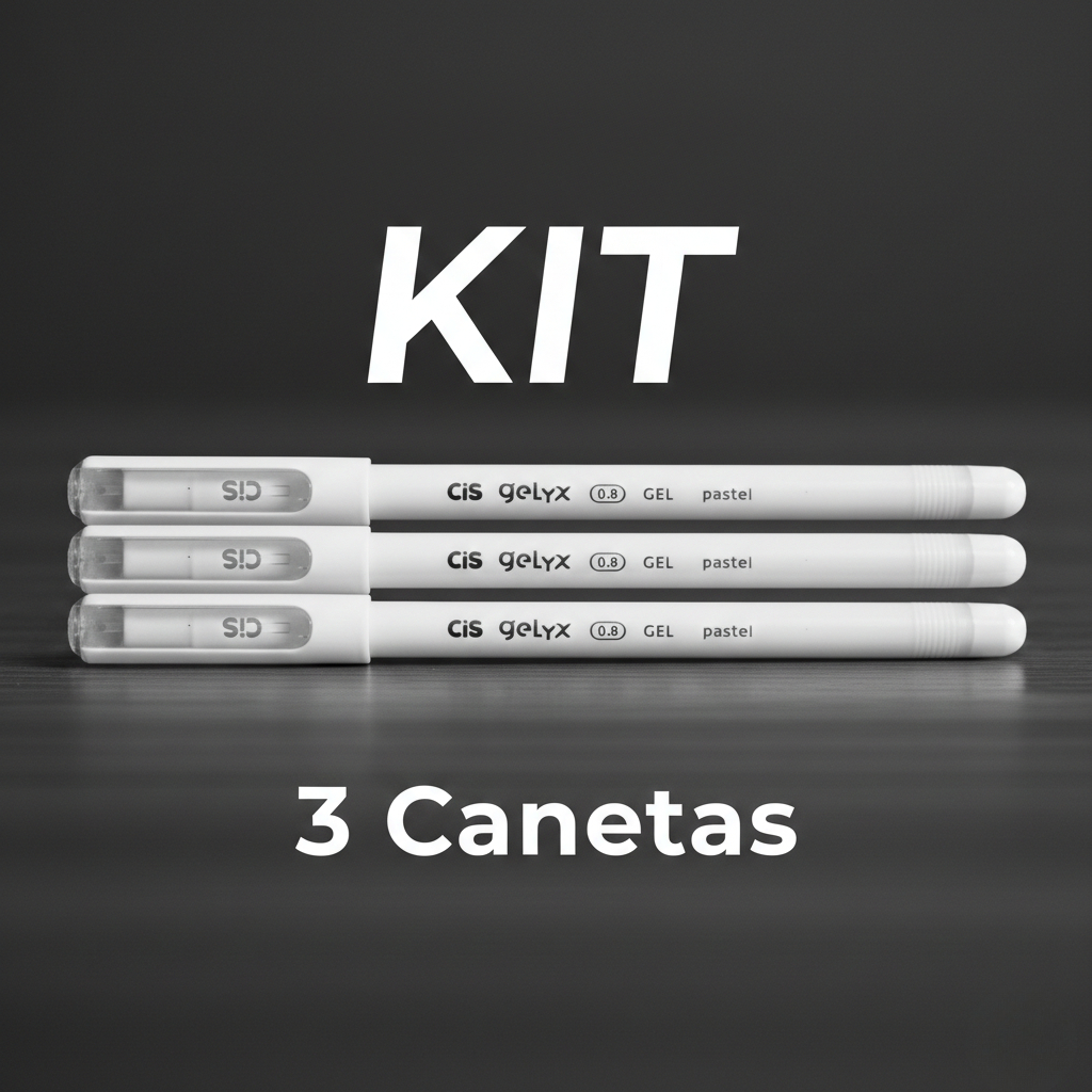 Kit 3 Canetas Gel Branca Cis Gelyx 0.8mm Original