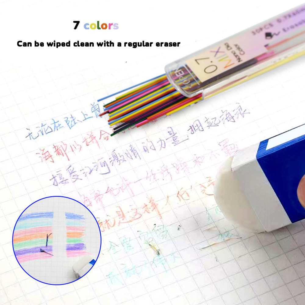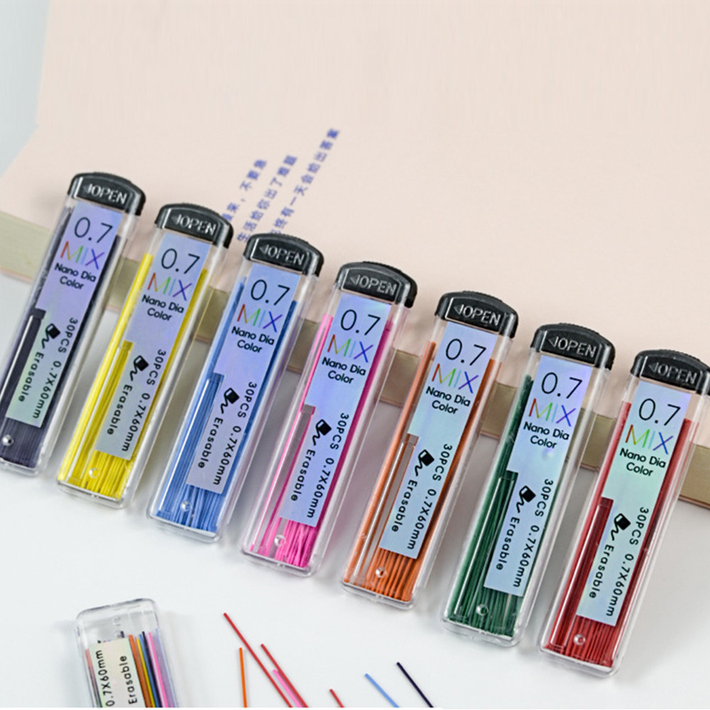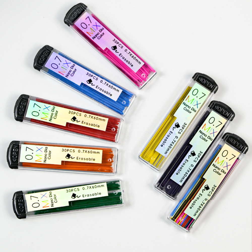 0,7mm Lápis Mecânico Colorido Recarga De Alunos Escrevendo Desenho Recargas Substituíveis Material De Escritório Escolar