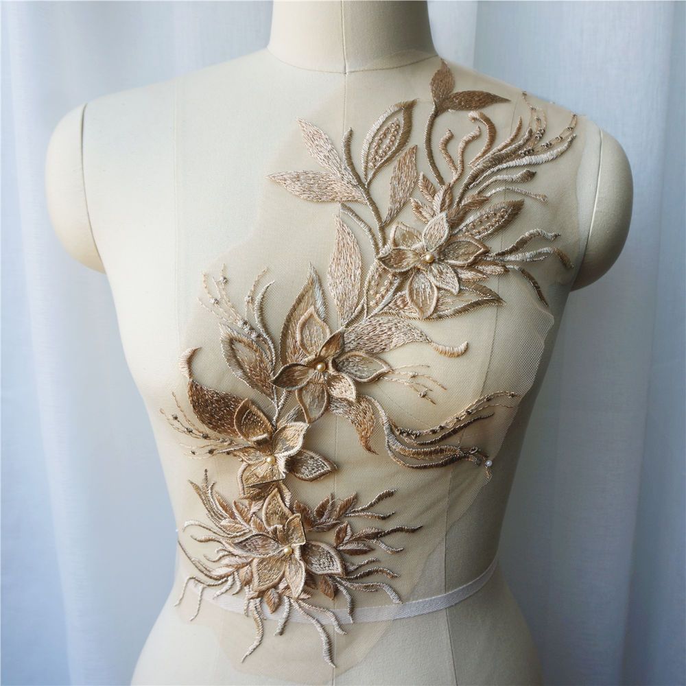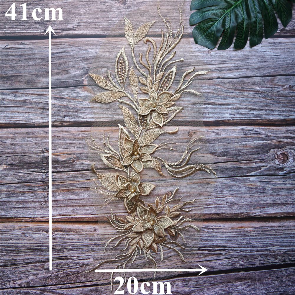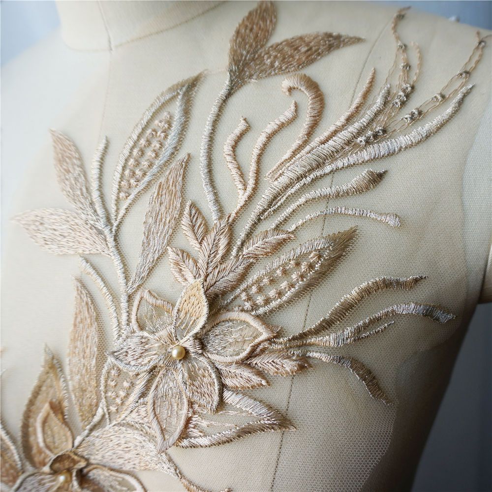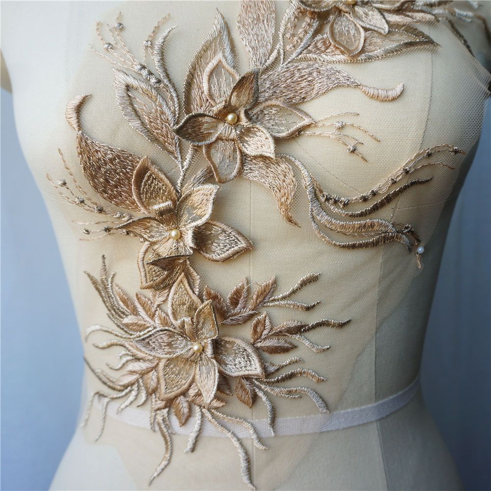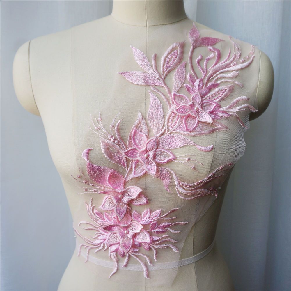 Branco Preto Cinza 3D Flor Borla Renda Tecido Vestido Apliques Gola Bordada Malha Costura Remendo Para Casamento Roupas
