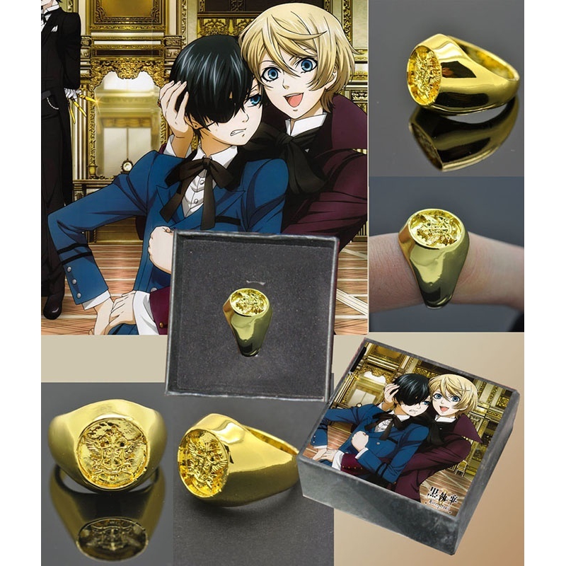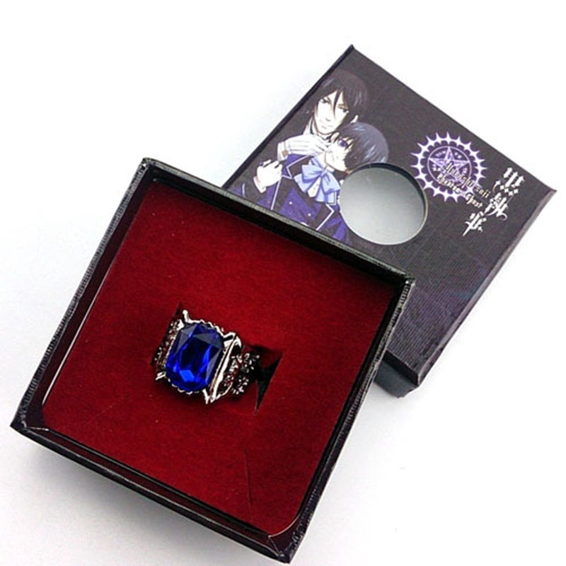 Anime Black Butler Ciel Phantomhive Anel Liga Safira Águia Logotipo Amantes Anéis