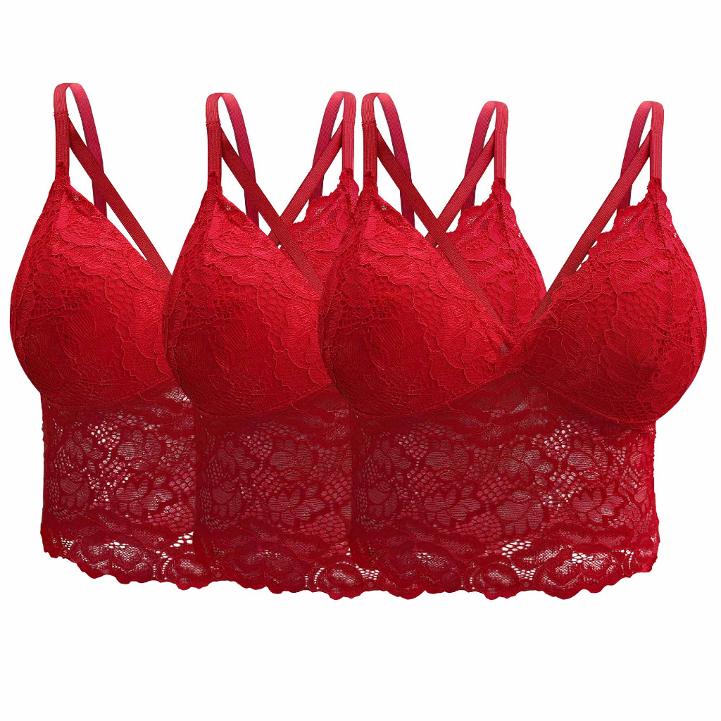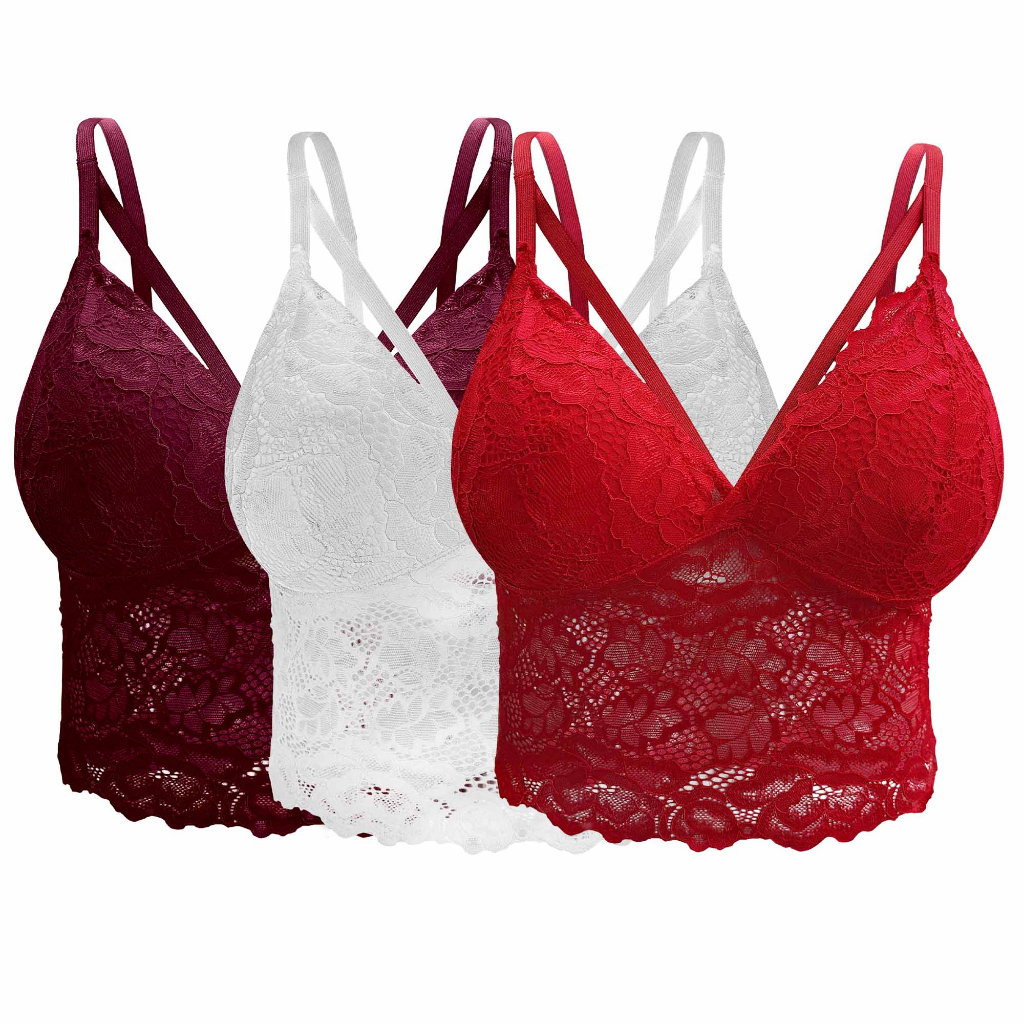 Kit 3 Croppeds de Renda Tira Dupla Com Bojo Alça Regulável Top Feminino