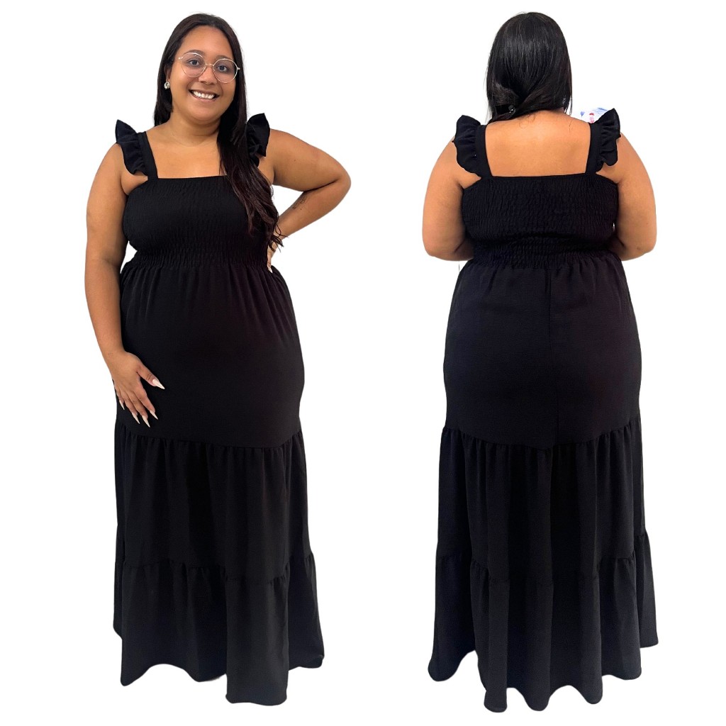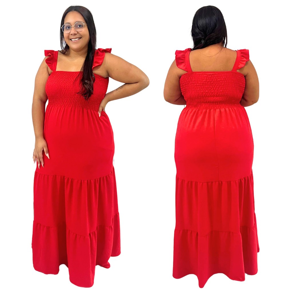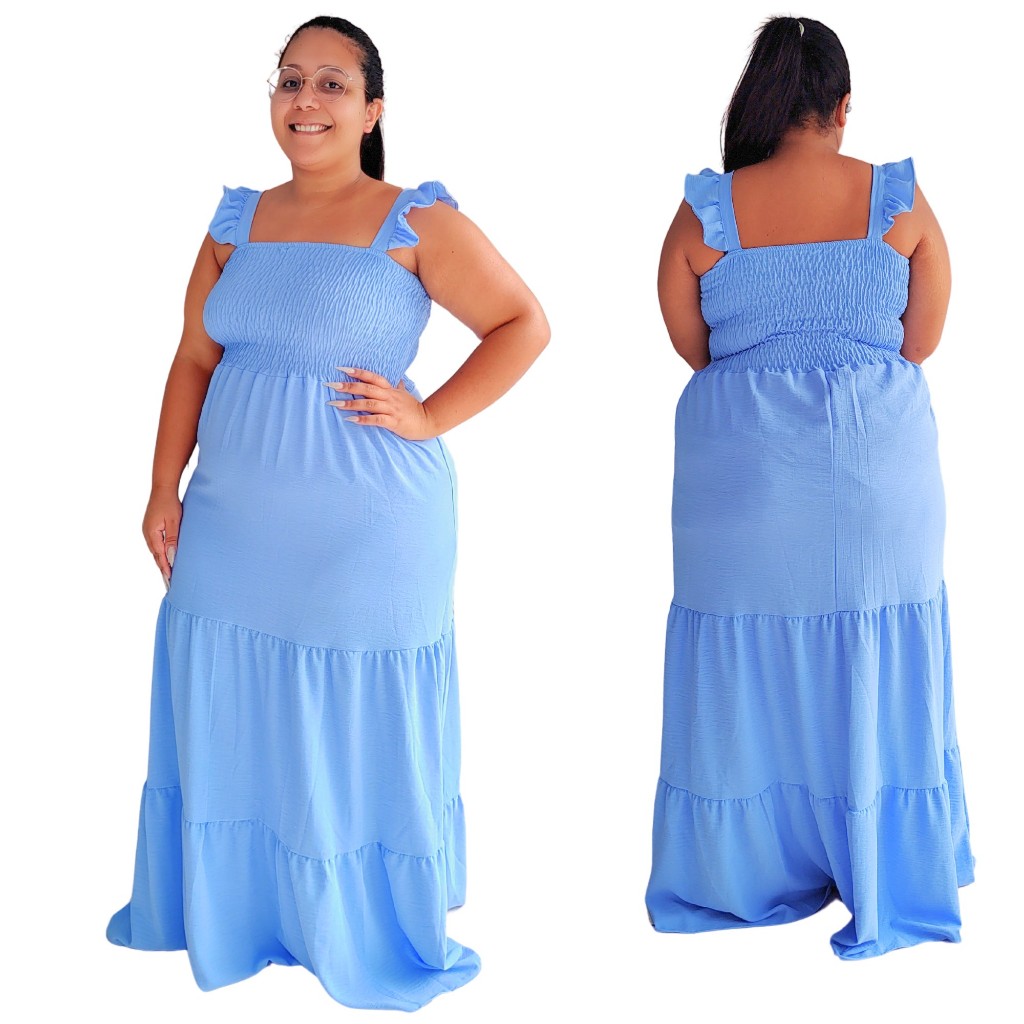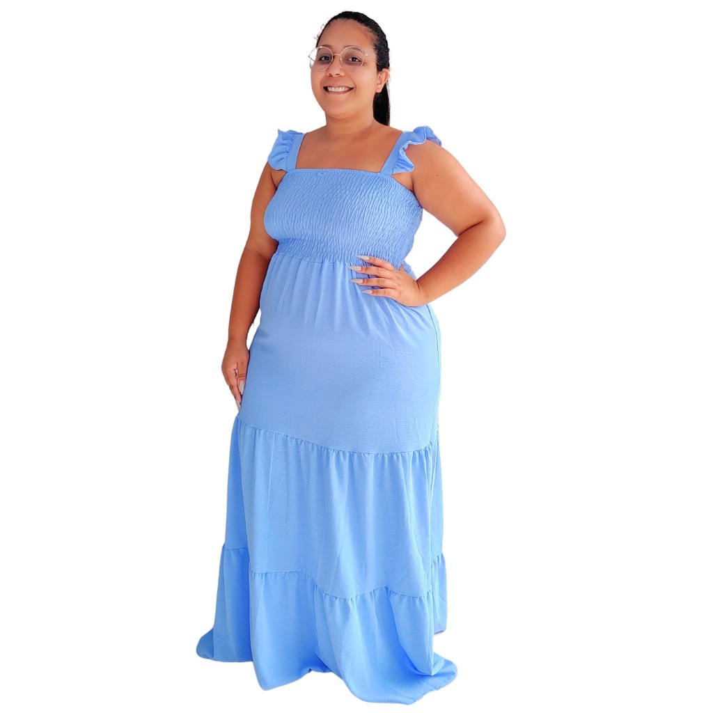 Vestido Plus Size Feminino Moda Evangélica Alça Ciganinha Com Lastex Tecido Duna Curve