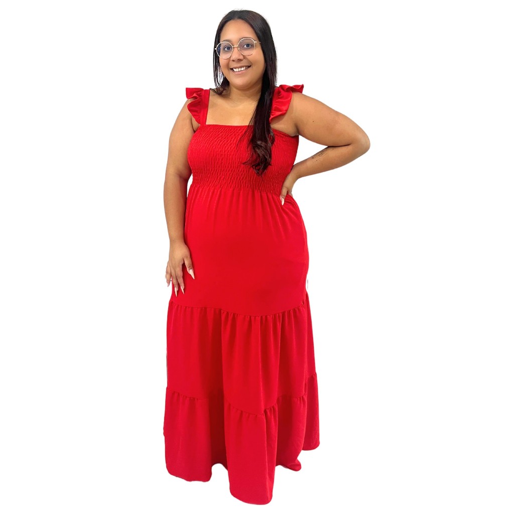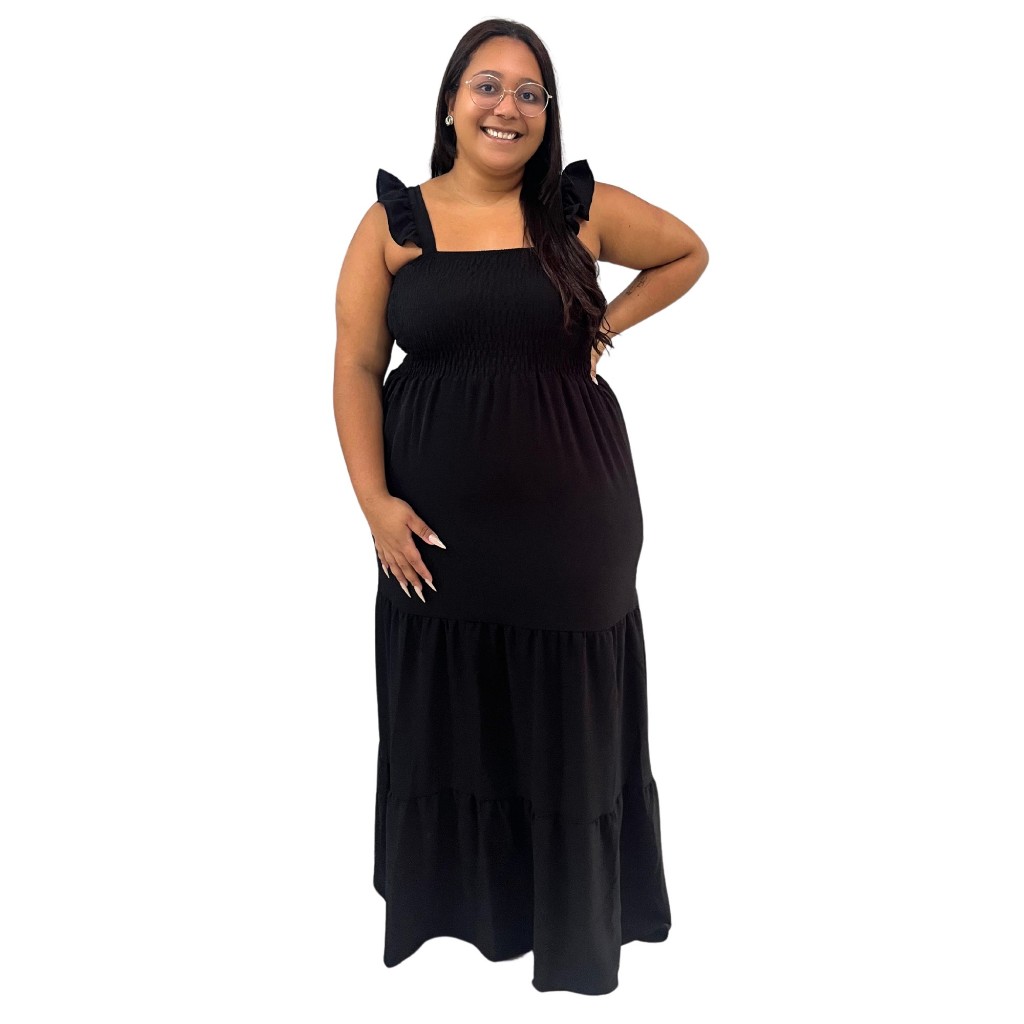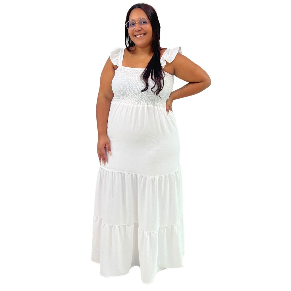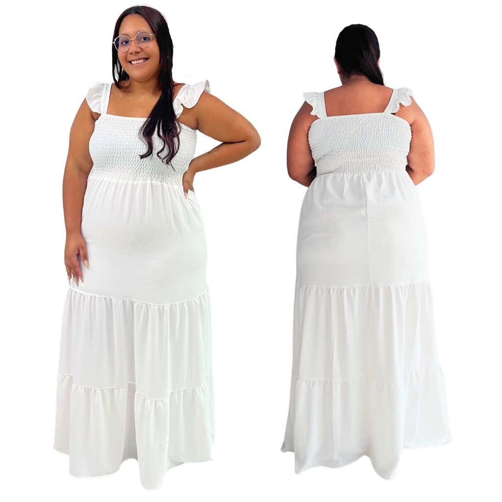 Vestido Plus Size Feminino Moda Evangélica Alça Ciganinha Com Lastex Tecido Duna Curve