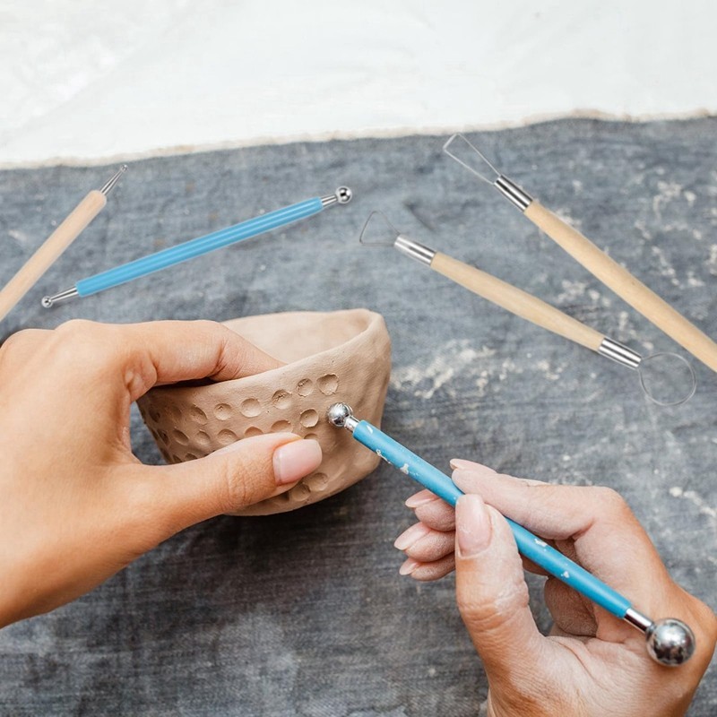 Kit De Ferramentas Para Cerâmica , De Pontilhamento Com Alça De Madeira , Bolsa Argila , 21 Peças