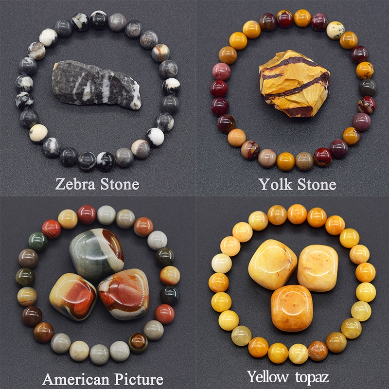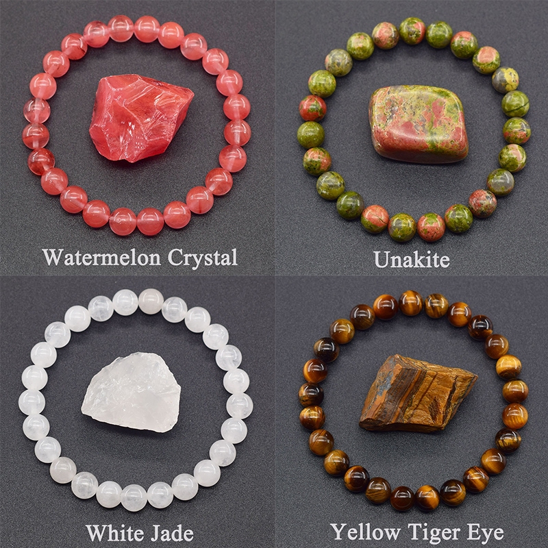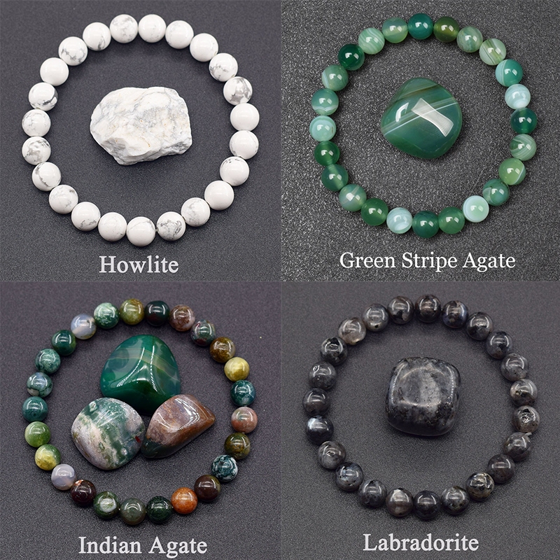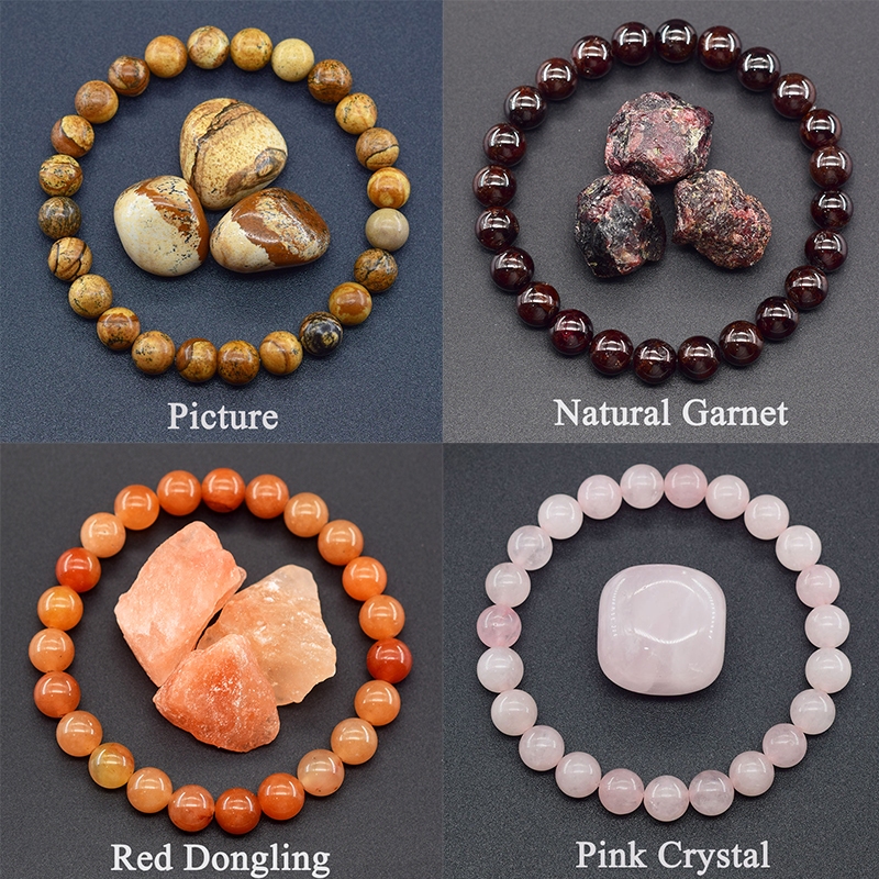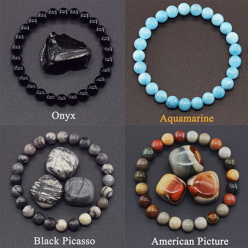 8MM Pedra Natural Redonda Grânulo Pulseiras Mulheres Homens Charme Cristal Pedras Preciosas Pulseira Jóias